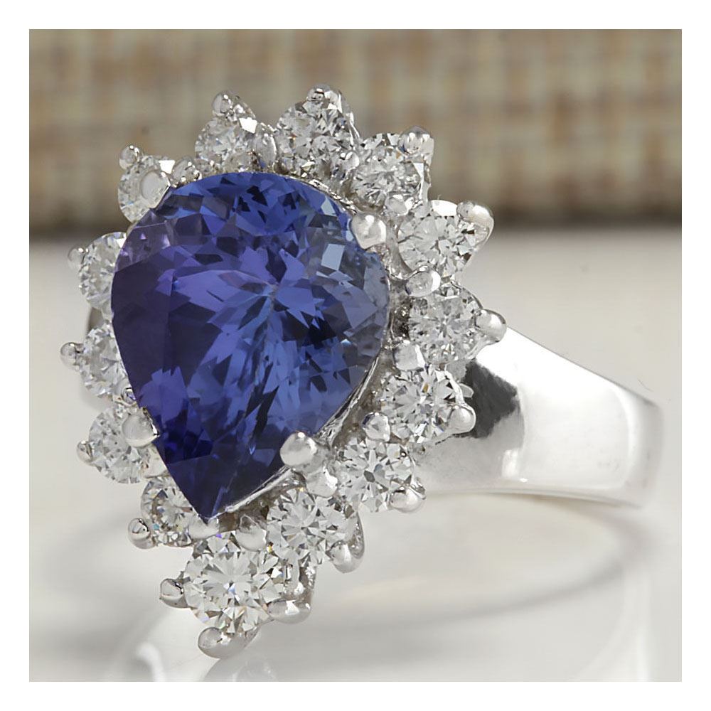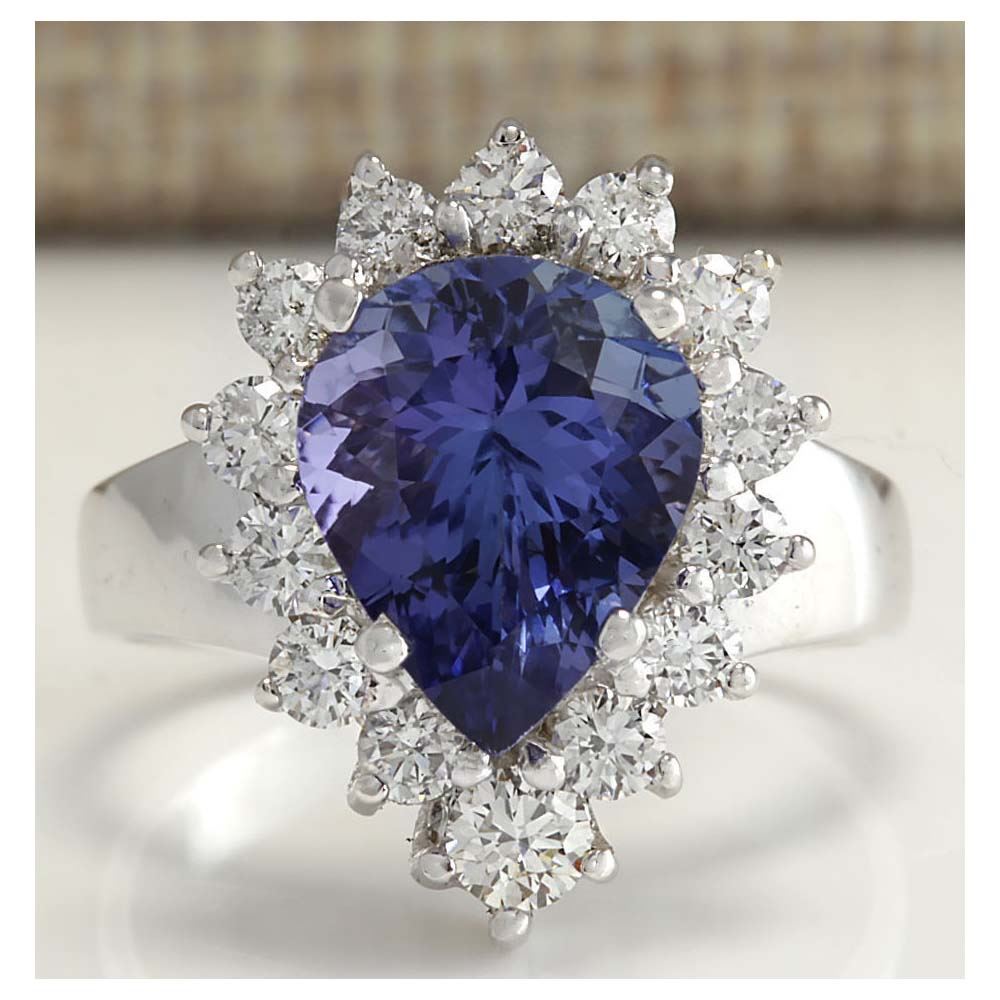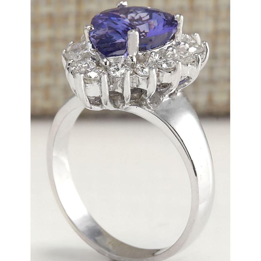 5.10 CTW Natural Tanzanite And Diamond Ring 14K Solid White Gold