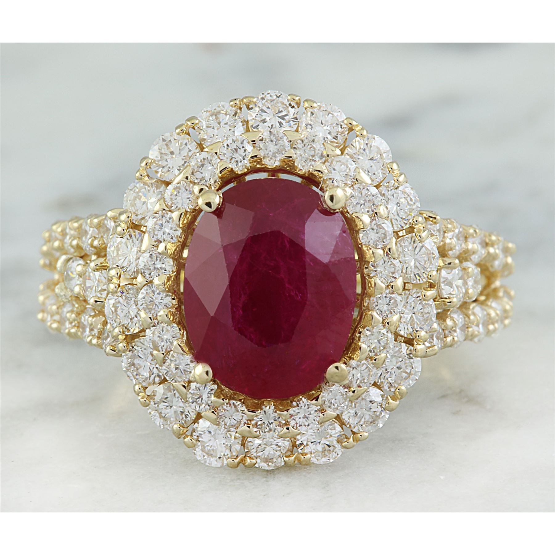 5.10 CTW Ruby 18K Yellow Gold Diamond Ring