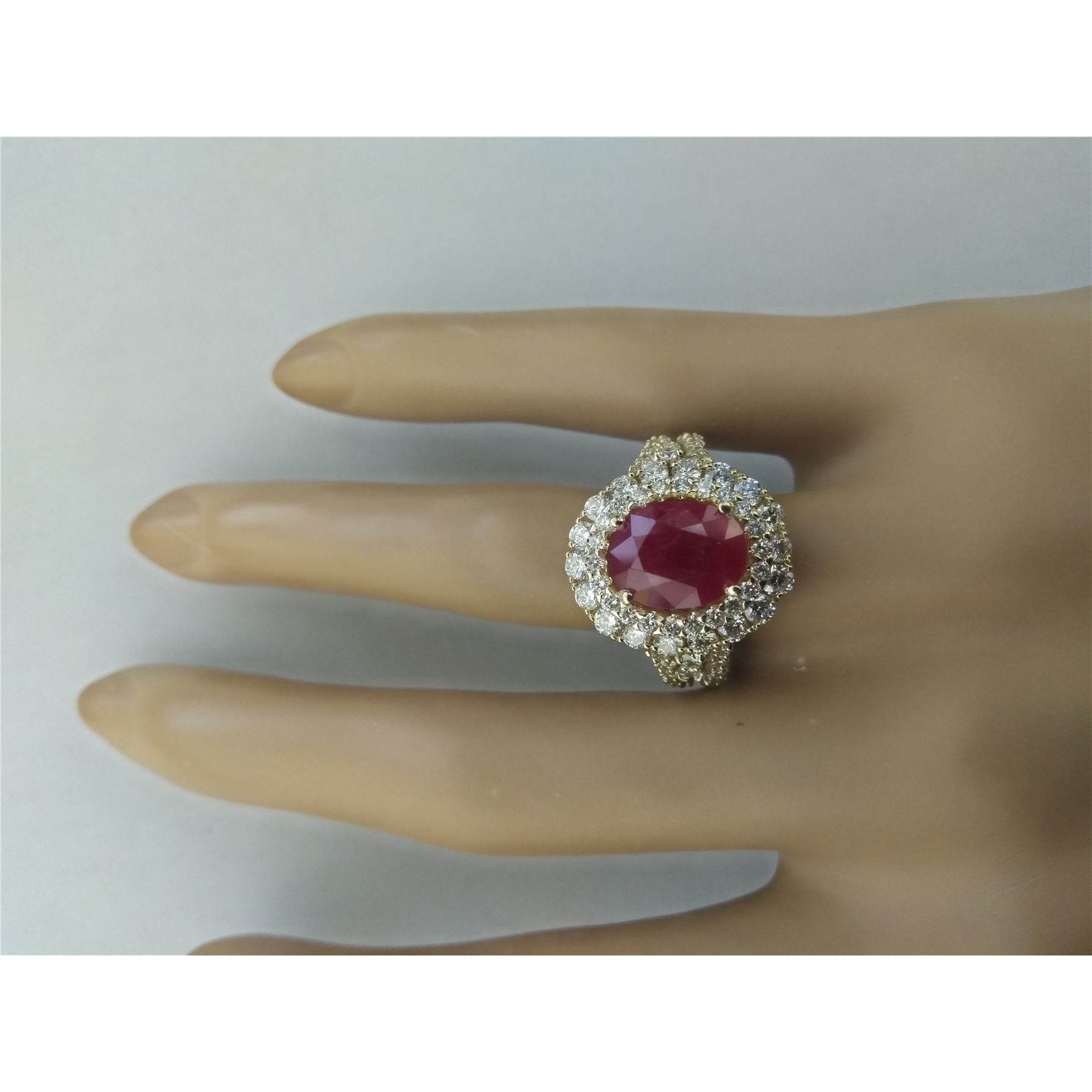 5.10 CTW Ruby 18K Yellow Gold Diamond Ring