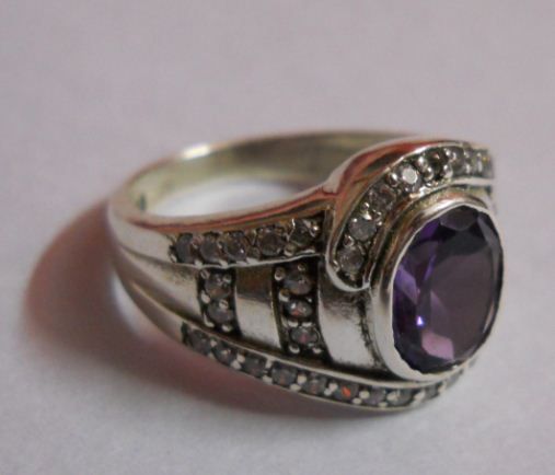 5.100g Ring of Amethyst & CZ Sterling Silver
