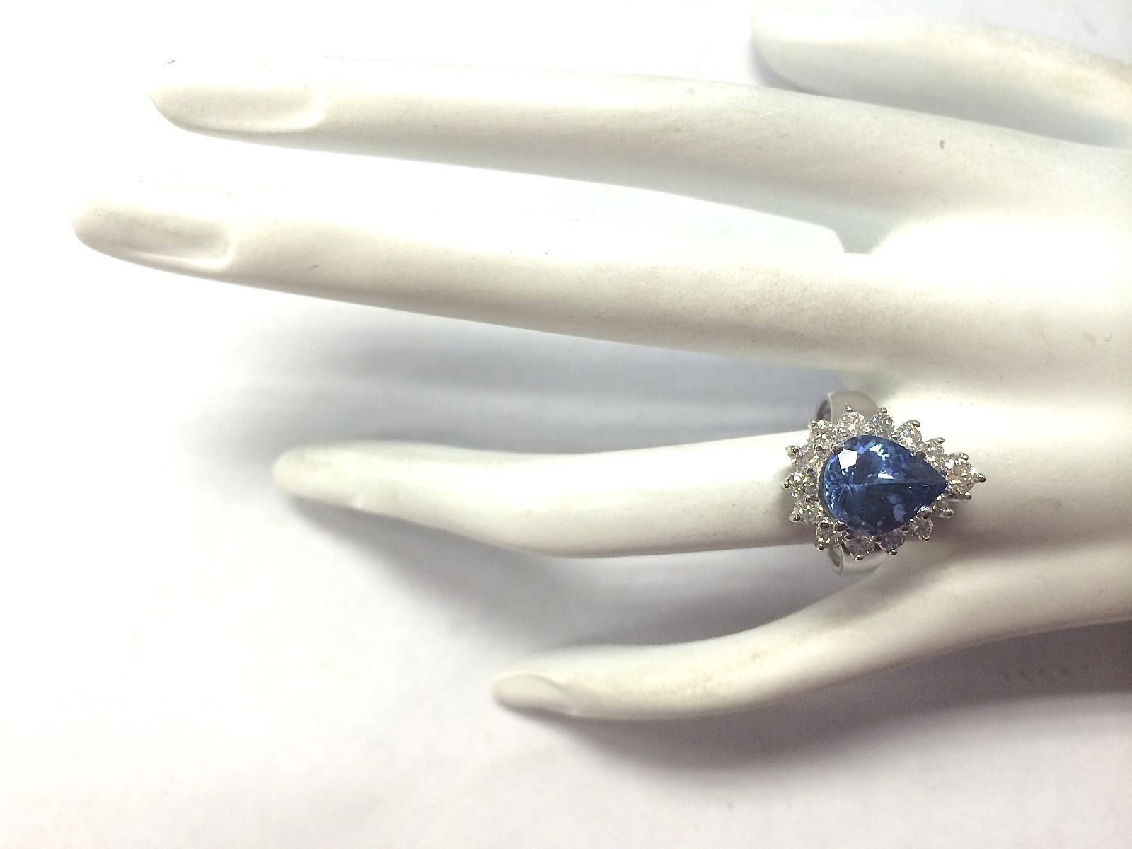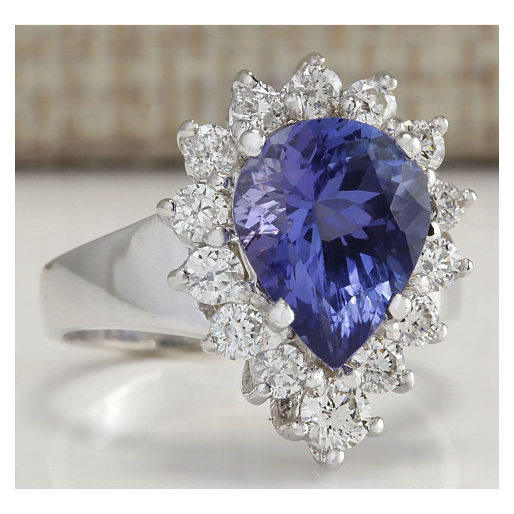 5.10CTW Natural Tanzanite And Diamond Ring 14K Solid White Gold