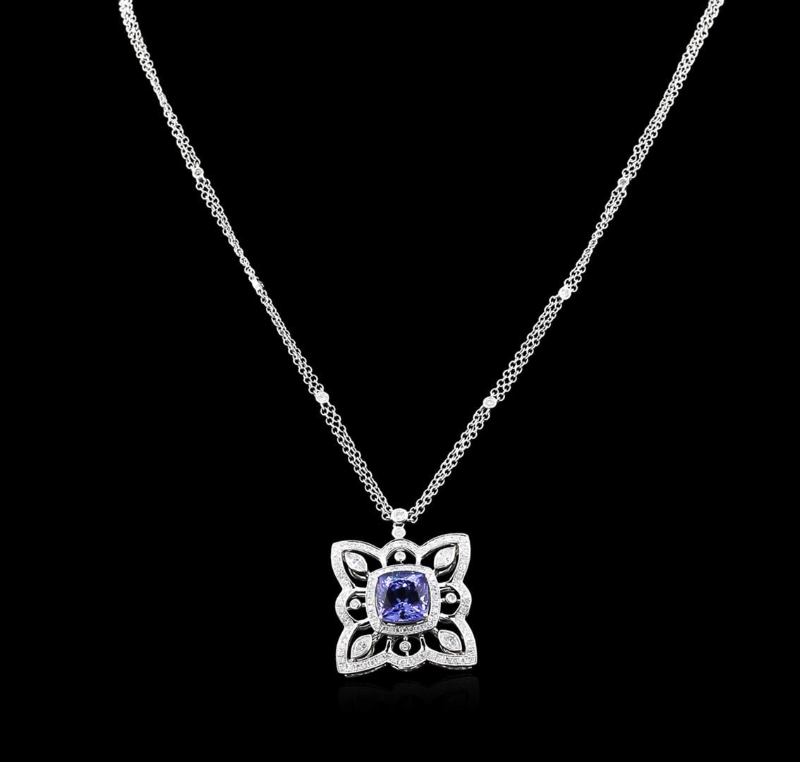 One pendant featuring: 18KT white gold weighing 12.47 grams containing one tanzanite with a total weight of 5.10ct and diamonds with a total weight of 1.65ct.