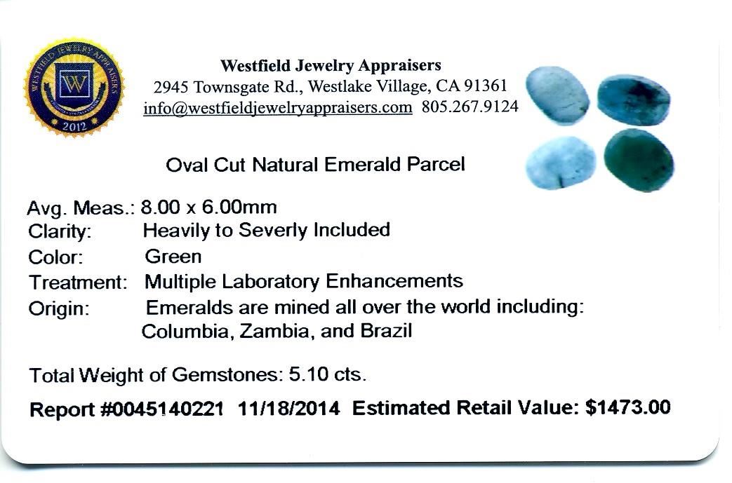 5.10cts. Oval Cut Natural Emerald Parcel Westfield Appraised at $1,473.00.