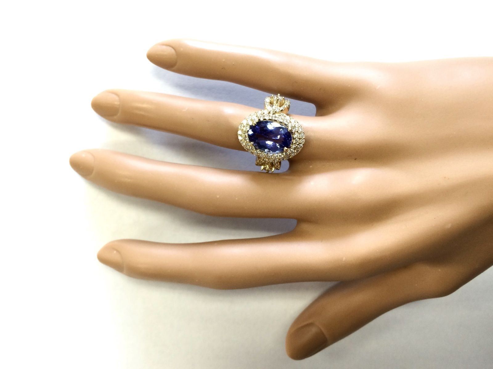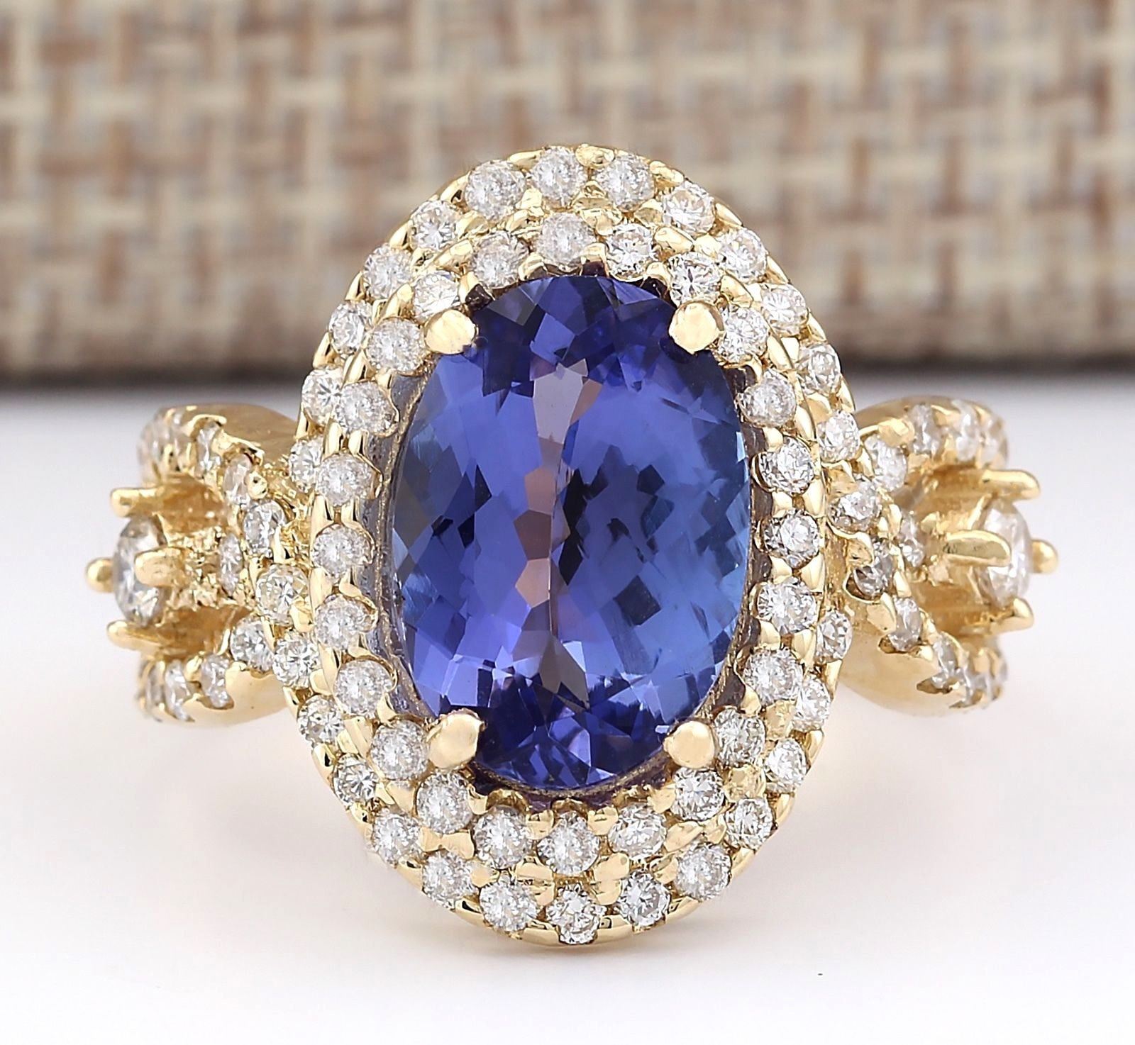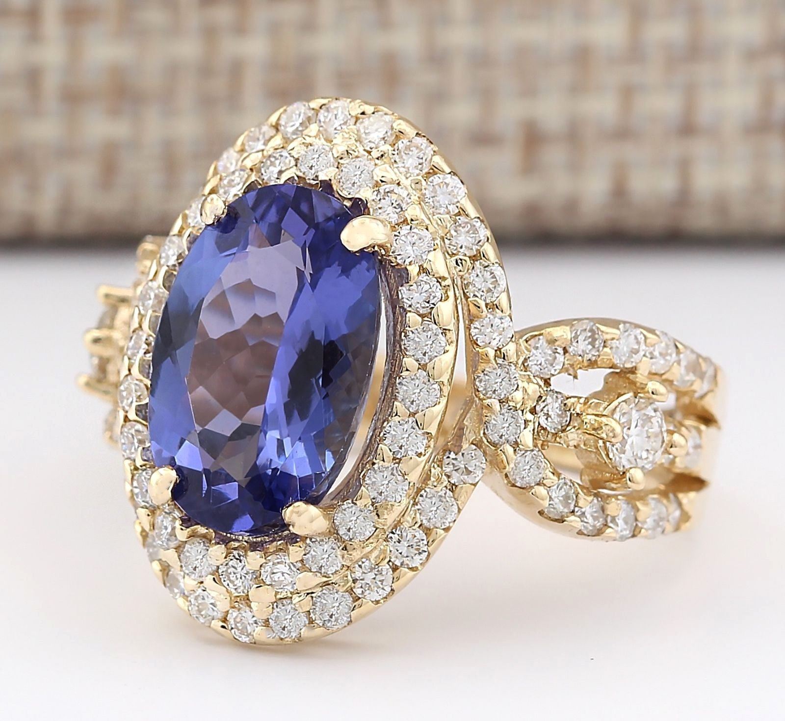 5.11 CTW Natural Tanzanite And Diamond Ring In 14k Yellow Gold