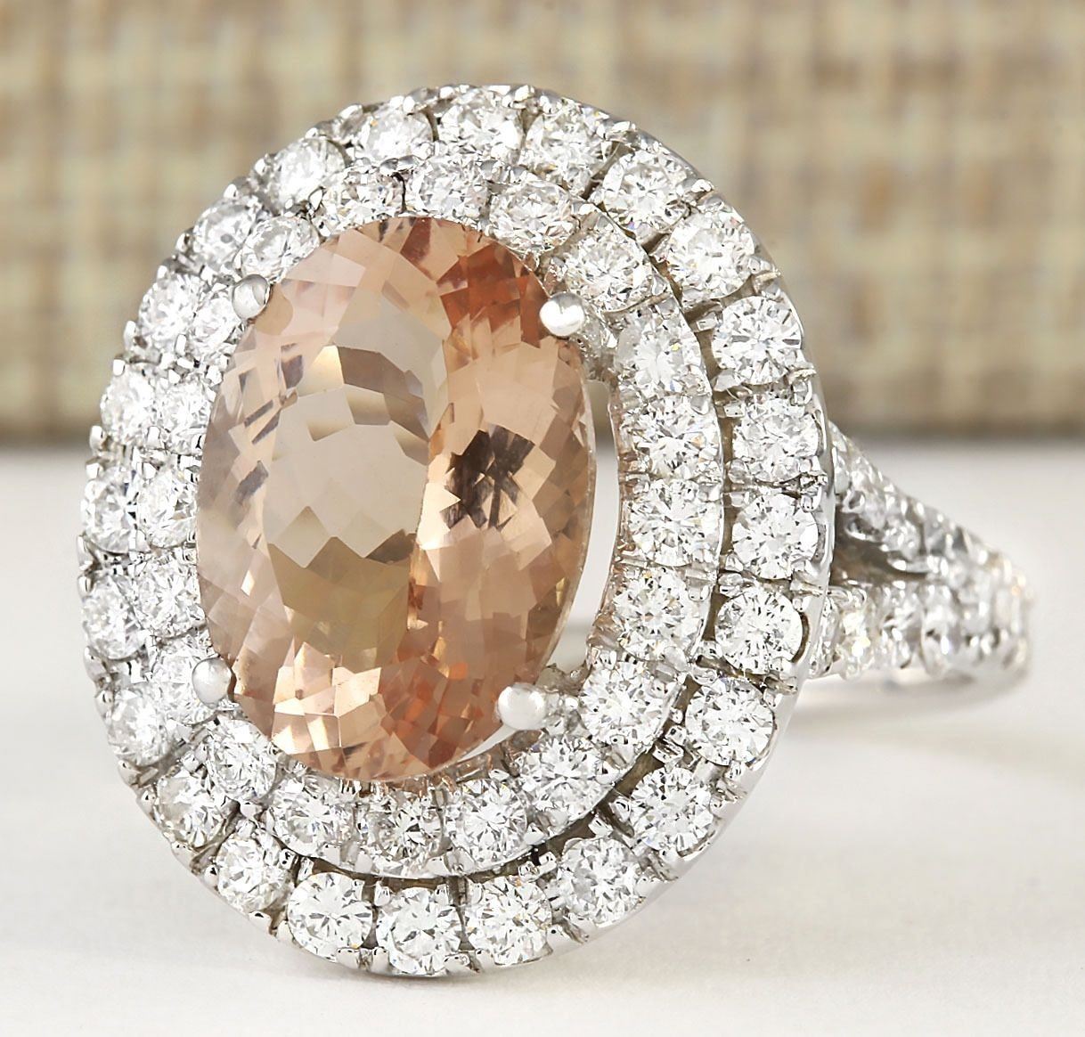 5.12 CTW Natural Morganite And Diamond Ring In 18K White Gold