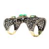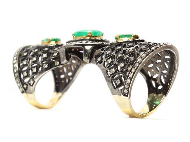 EMERALD AND DIAMOND KNUCKLE RING/**/Diamond 1 CTW:1.92/Diamond Color & Clarity:J-L/I1-I2(Single Cut)/Diamond Count 2:/Diamond 2 CTW:/Diamond Color & Clarity:/Gemstone Count1:/Gemstone 1 CTW:3.2/Gemstone Count 2:/Gemstone 2 CTW:/Metal Type 1 Gold:18k Yellow Gold /Gold Gram Weight:4.2/Metal Type 2:over 0.925 Sterling Silver/Silver Gram Weight:10.44/Gross Weight: 15.67