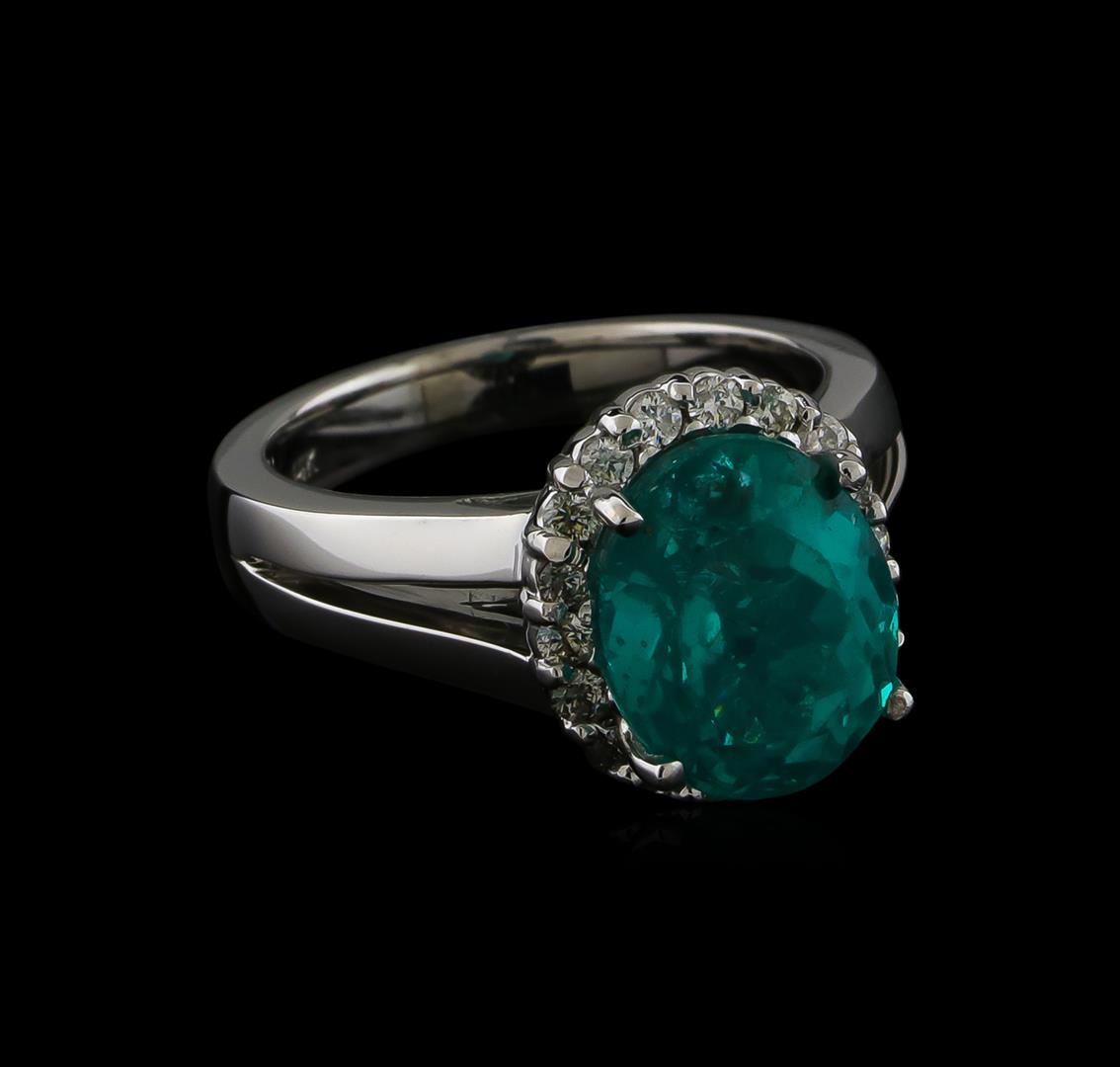 One Ring featuring: 14KT White Gold weighing 7.5 grams containing one Apatite center stone with a total weight of 5.12ct and Diamonds with a total weight of 0.33ct.