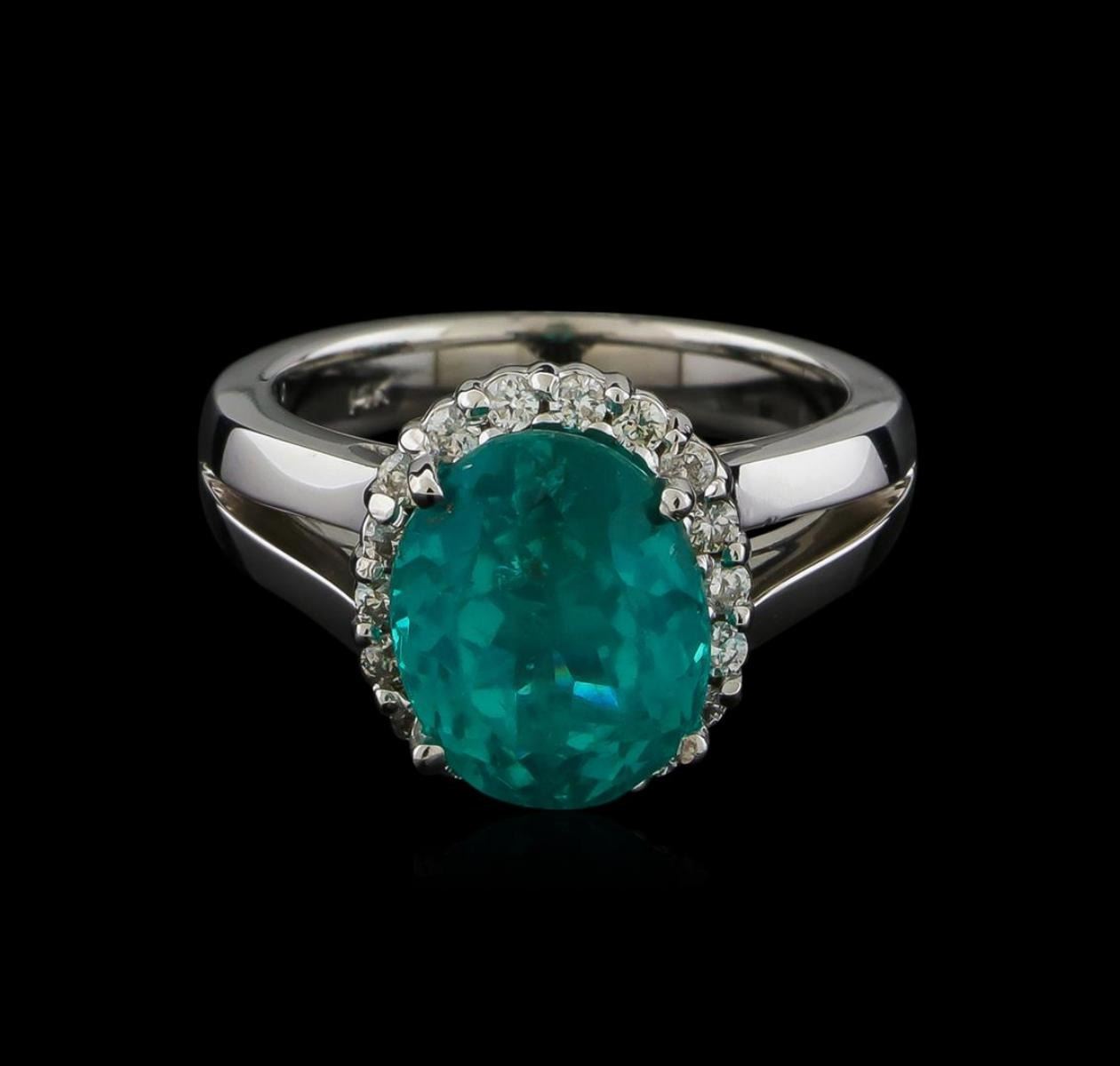 One Ring featuring: 14KT White Gold weighing 7.5 grams containing one Apatite center stone with a total weight of 5.12ct and Diamonds with a total weight of 0.33ct.