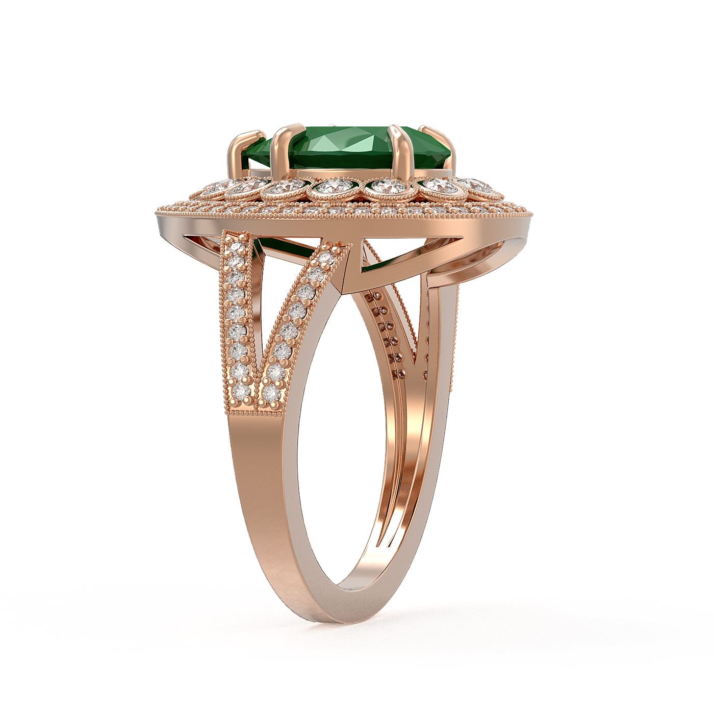 REF-178F2M - SKU: 43119 ---- 5.12 ctw Certified Emerald & Diamond Victorian Ring 14K Rose Gold