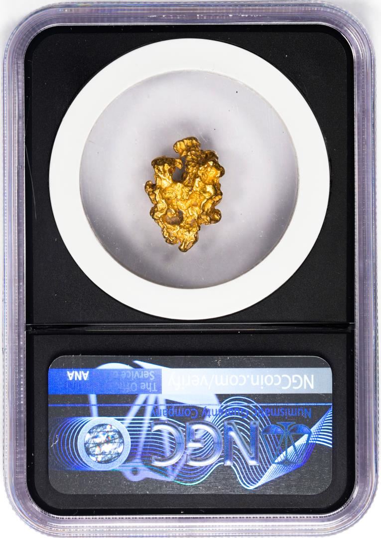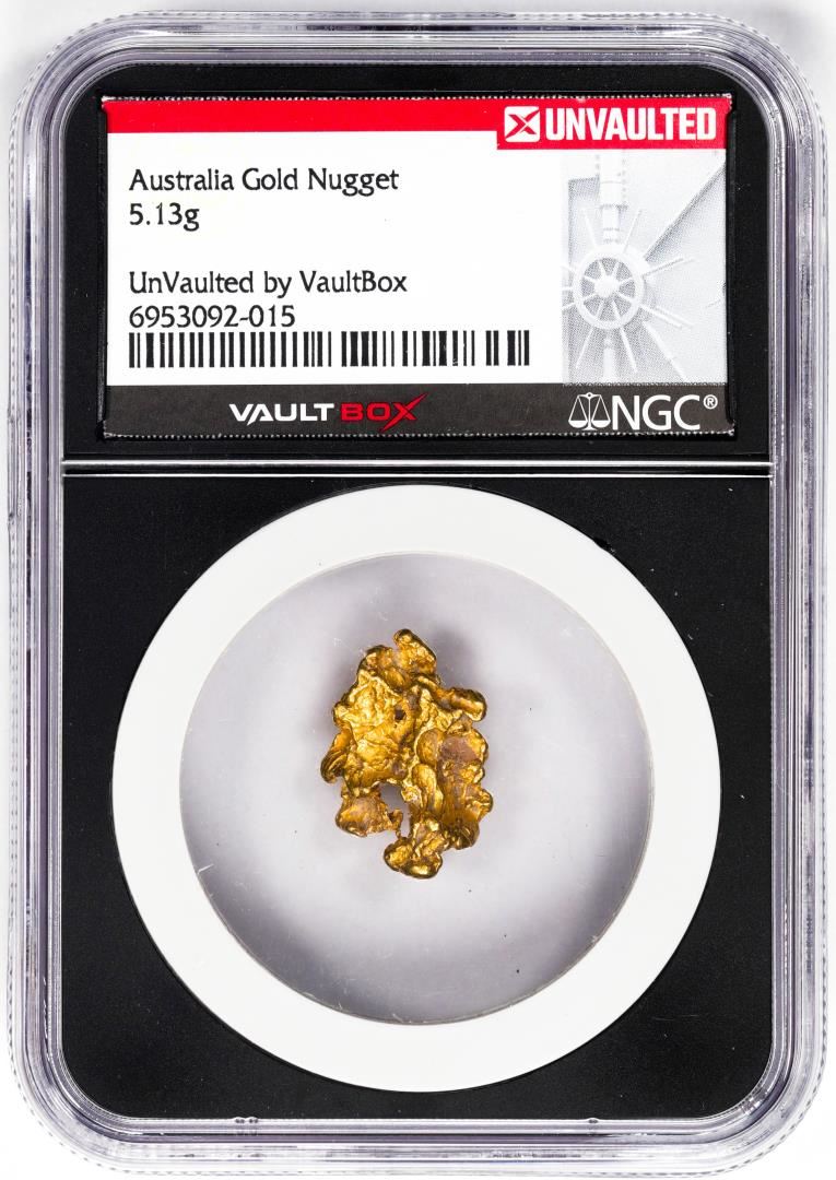 One 5.13 Gram Australia Gold Nugget NGC Vaultbox Unvaulted. NGC Certified.