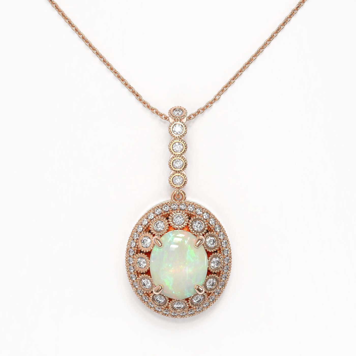 REF-182Y2X - SKU: 43836 ---- 5.13 ctw Certified Opal & Diamond Victorian Necklace 14K Rose Gold