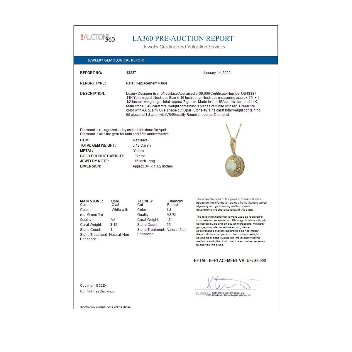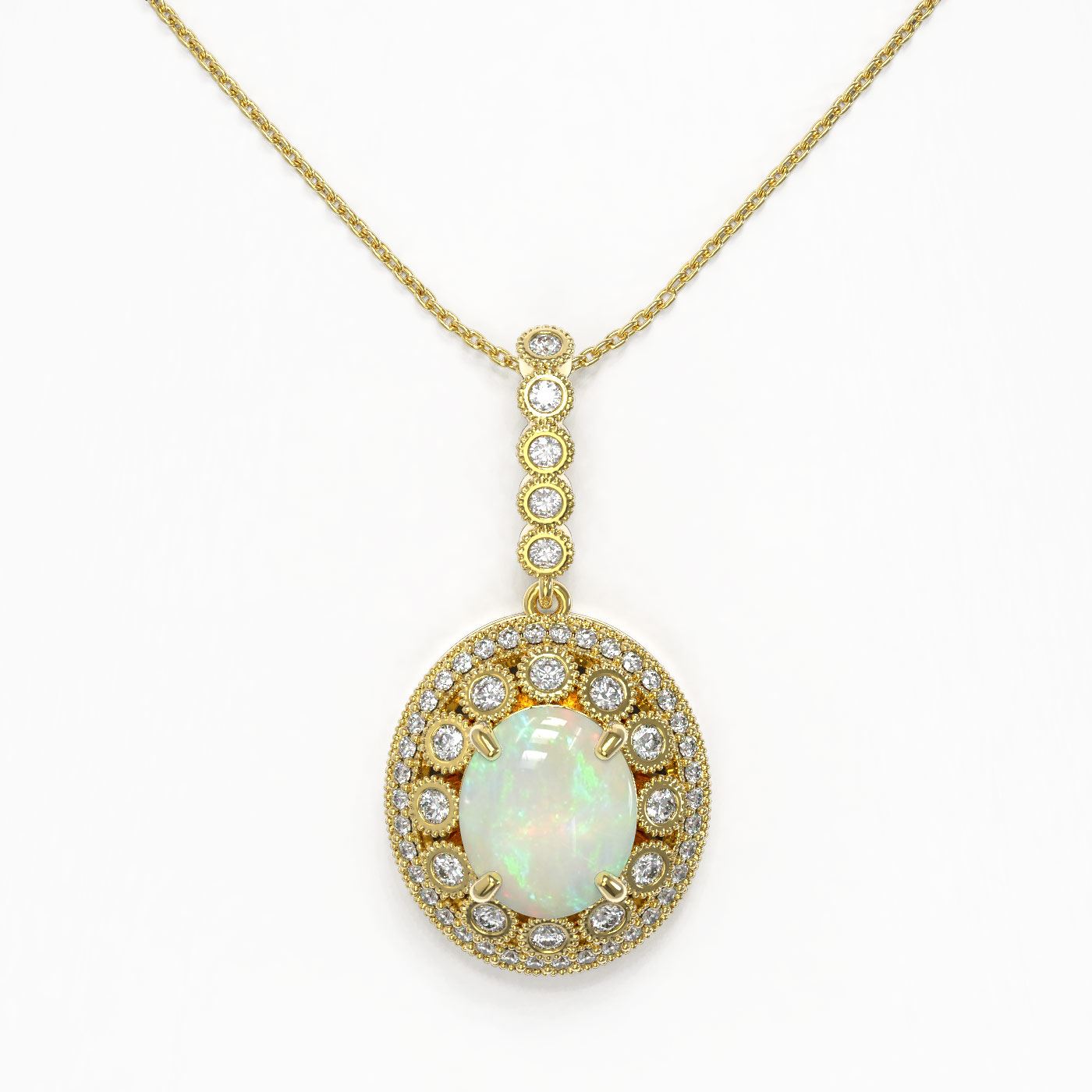 REF-182A2N - SKU: 43837 ---- 5.13 ctw Certified Opal & Diamond Victorian Necklace 14K Yellow Gold
