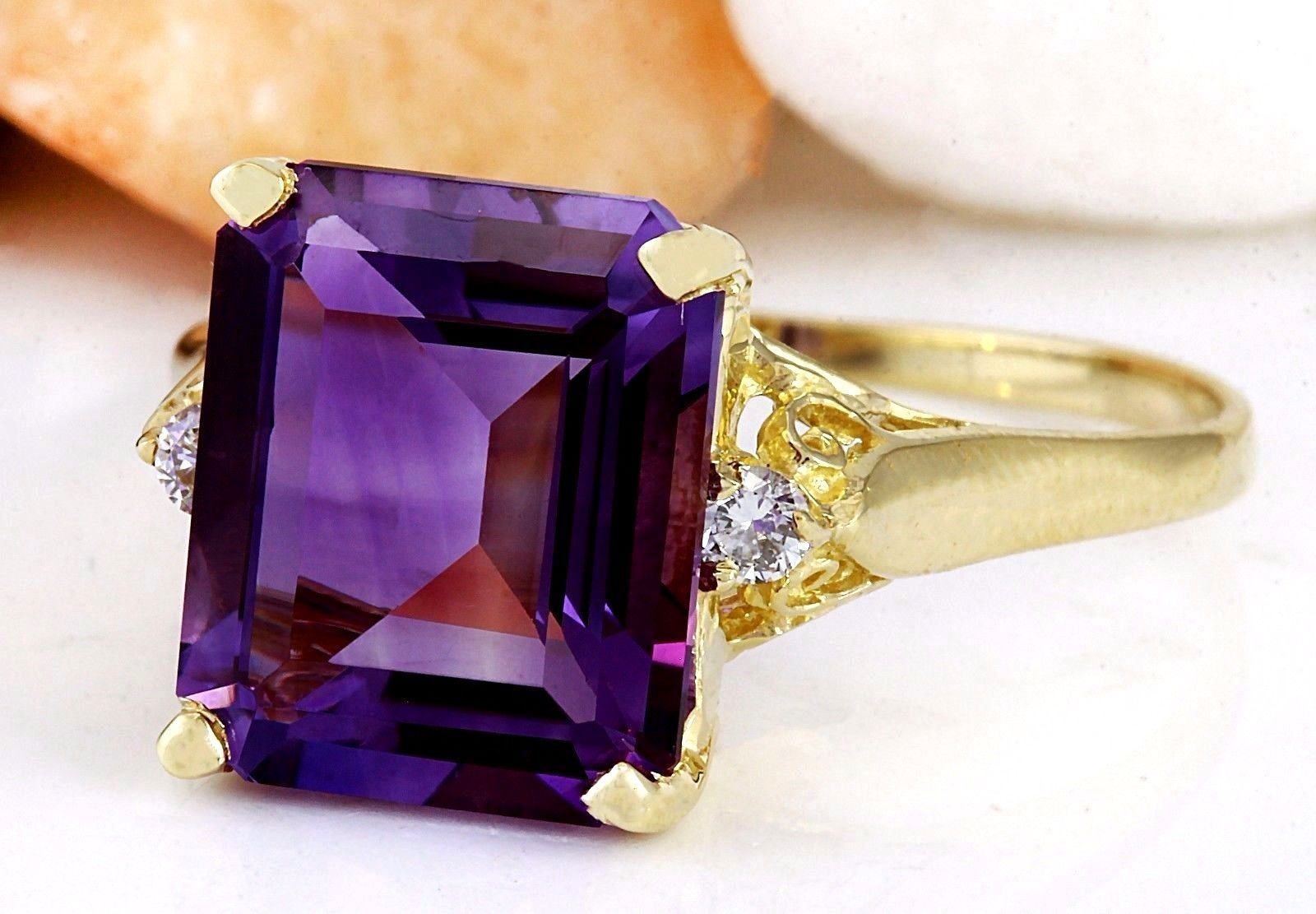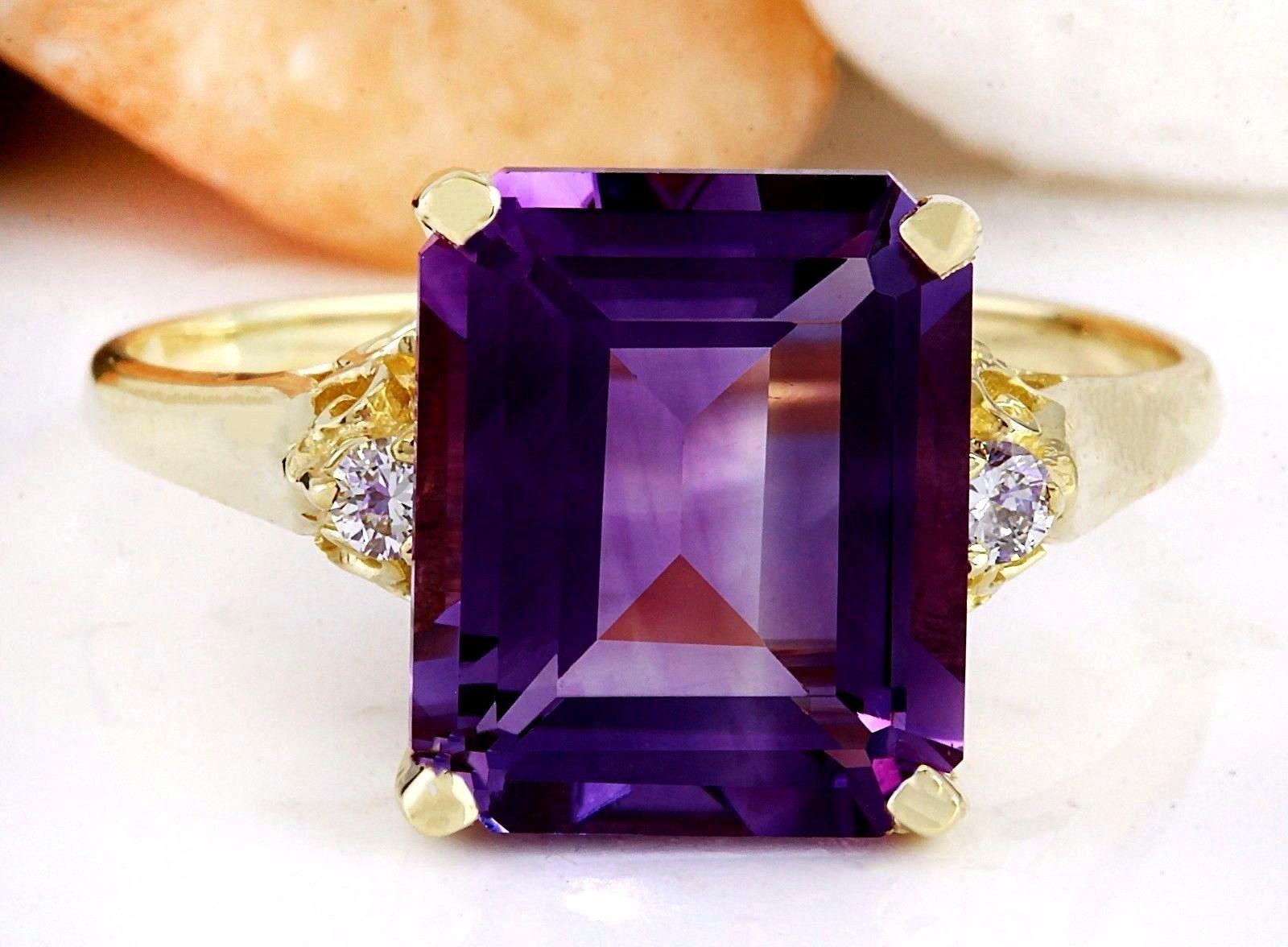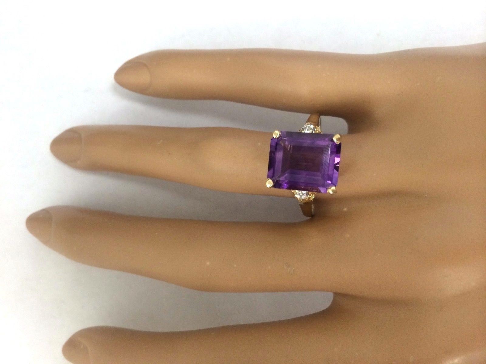 5.14 Carat Natural Amethyst 14K Solid Yellow Gold Diamond Ring