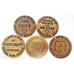 LOT OF 5 CAT HOUSE BROTHEL TOKENS