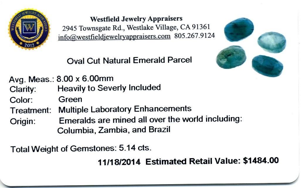 5.14cts. Oval Cut Natural Emerald Parcel Westfield Appraised at $1,484.00.