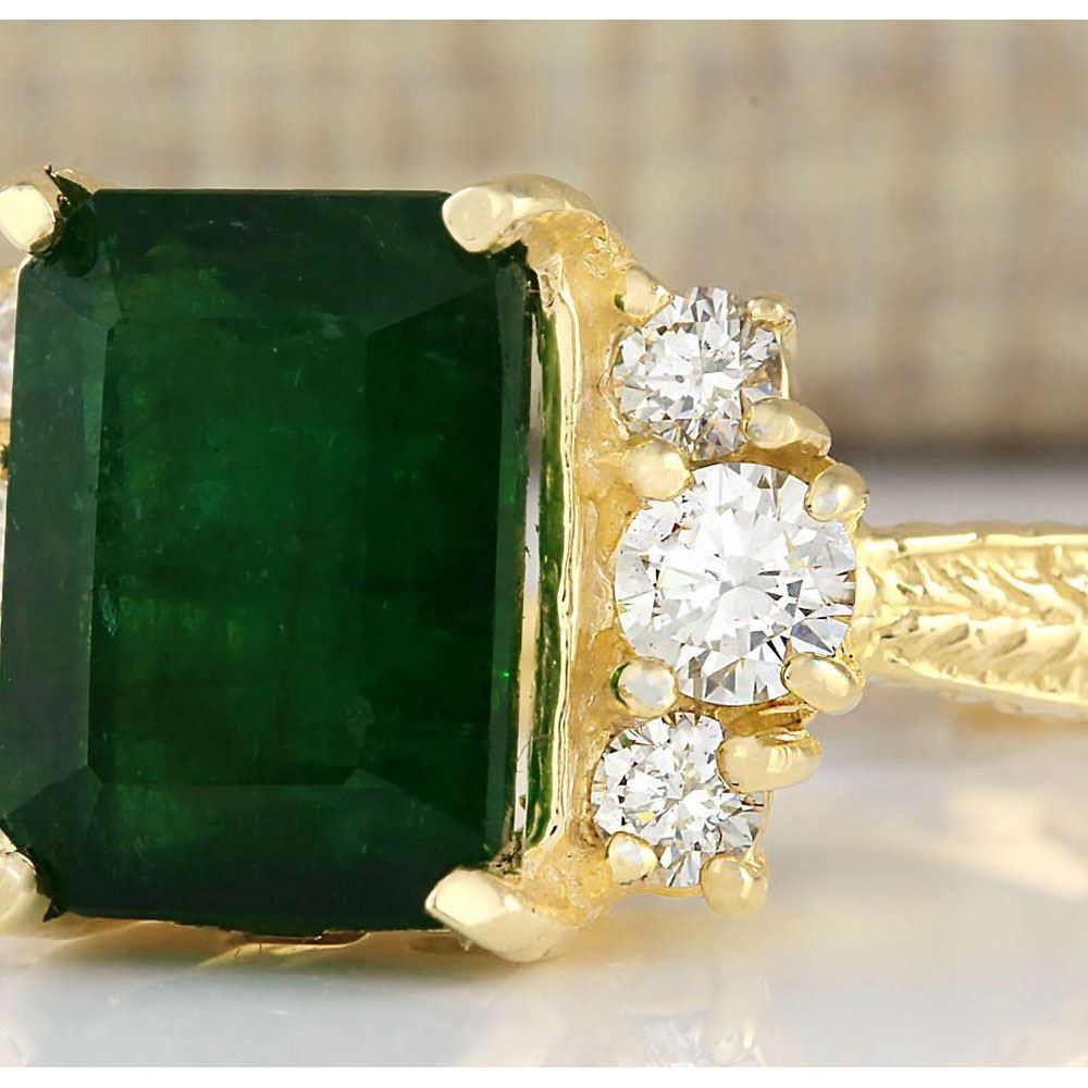 5.15 CTW Natural Emerald And Diamond Ring In 18K Yellow Gold