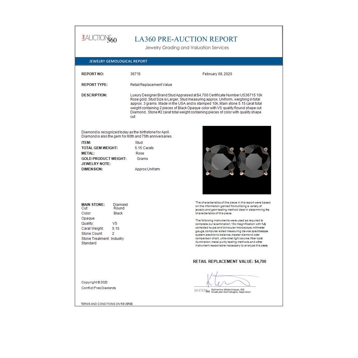 REF-82W2H - SKU: 36715 ---- 5.15 ctw Fancy Black Diamond Solitaire Stud Earrings 10k Rose Gold