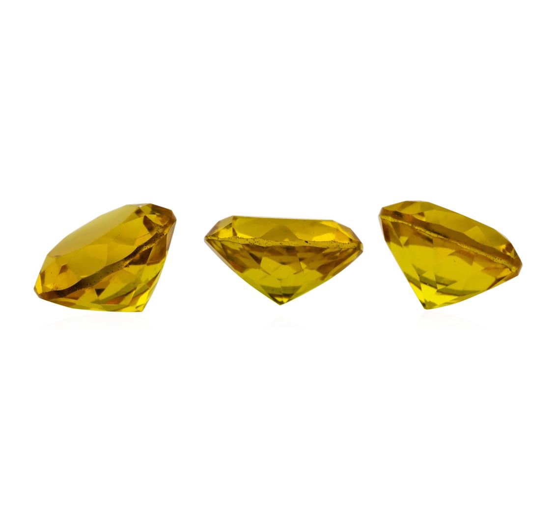 One natural round cut citrine quartz parcel of three with an exact weight of 5.15ctw., clarity is eye clean, yellowish orange, medium. Gemological Appraisals Services estimates the retail value at $206 GAS Appraised.