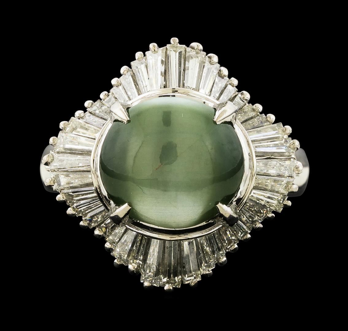 One ring featuring: Platinum containing Tiger Eye with a total weight of 5.15ct and Diamonds with a total weight of 1.18ct. Total Weight of Ring: 10.7 grams.