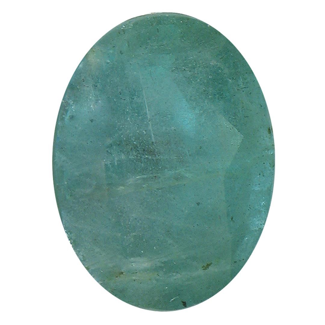 One oval mixed cut natural emerald, measuring 12.40 x 9.30 x 7.00mm, exact weight 5.15ct., clarity is heavily included, type III, dark, very slightly grayish, bluish green color, (GIA bG 7/3), cut is good. Indications of multiple laboratory enhancements, including high temperature heat treatment. Westfield Appraised at $2,380.00.