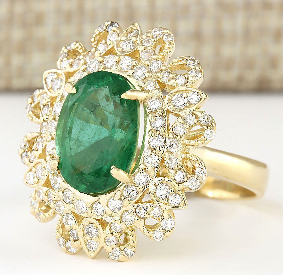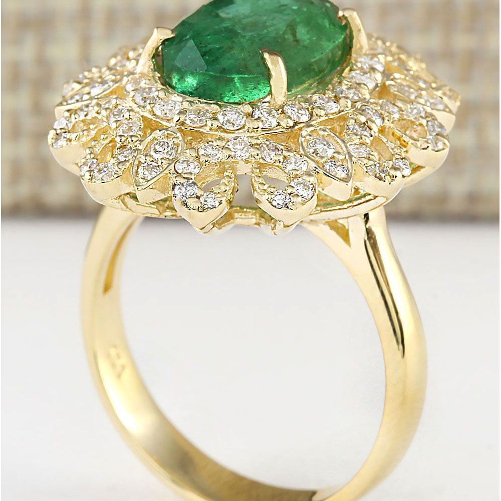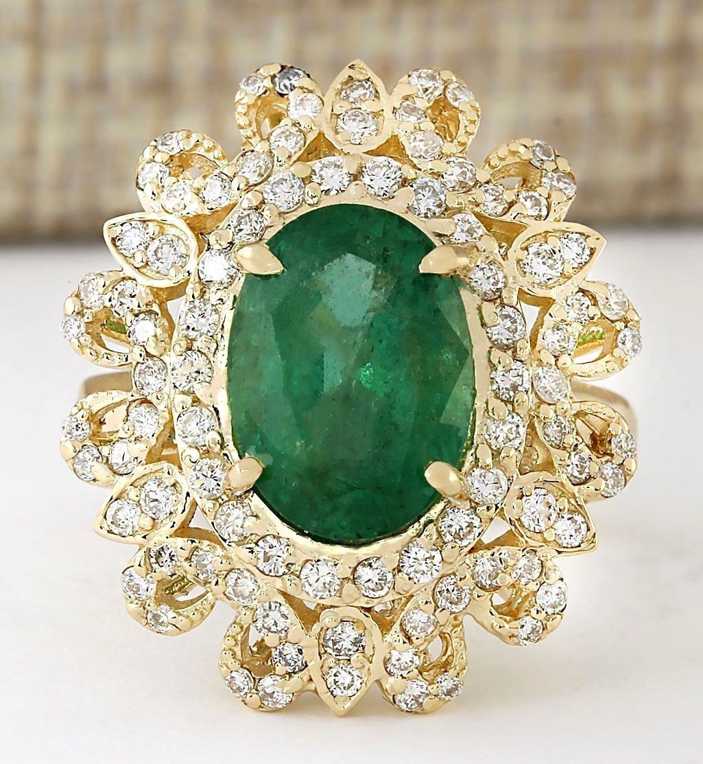 5.16 CTW Natural Emerald And Diamond Ring In 14k Yellow Gold