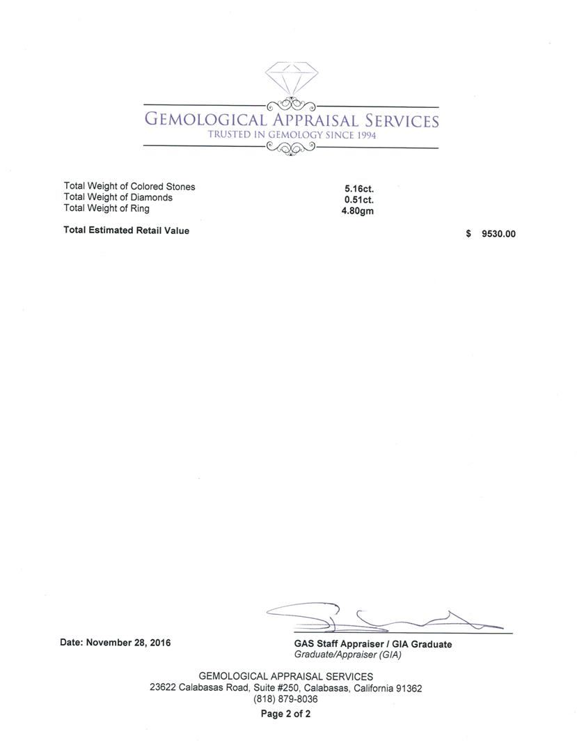 Not all Jewelry, watches or loose stones are appraised and the appraisals are provided for bidders only in certain instances at the discretion of SAA. Our appraisals are conducted by independent third-party appraisal firms. Such firms may be certified GIA Gemologists or have education in the industry or alternative certifications. Appraisals should be used for verification of gemstone and/or metal weight, size, and grade only, not actual value for resale or insurance purposes. Appraisal value should be not considered for actual value, as price varies greatly from retail locations and other merchants in different geographic locations. All Items auctioned by SAA should not be purchased with a view or expectation toward resale for appraisal price given, or to make a profit. The ultimate value for which an item can be resold may vary drastically from the appraisals listed by SAA.