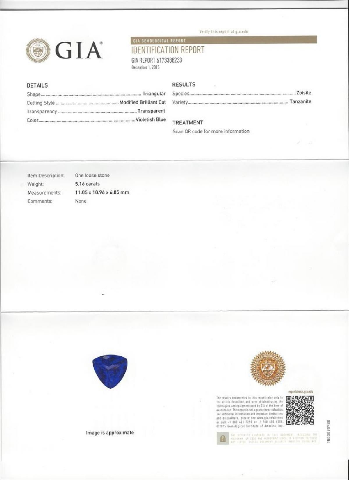 One 5.16ct Tanzanite and Diamond Ring - Platinum. AIG certified. See Appraisal for more details. AIG Appraised.