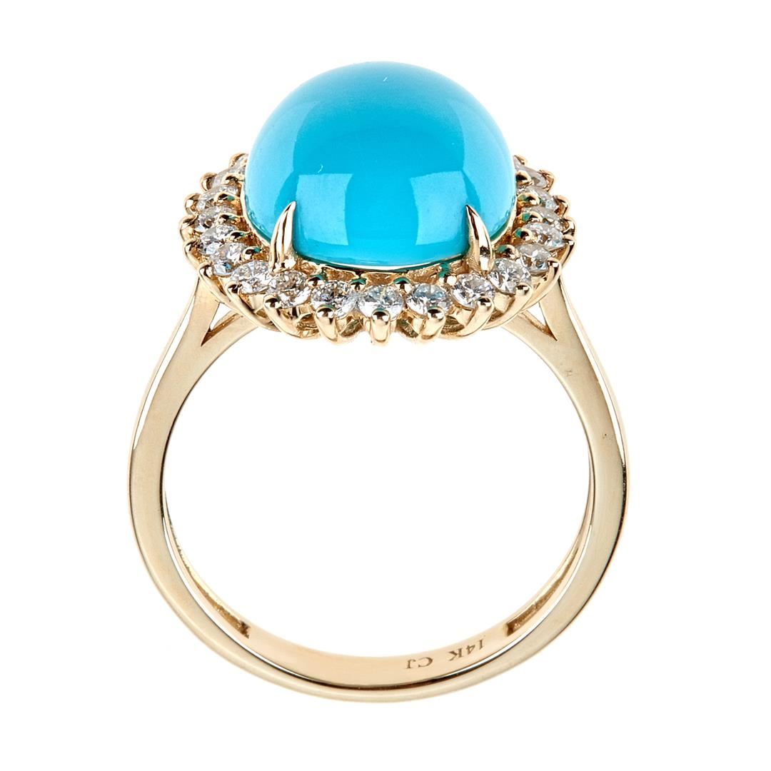 One lady's ring featuring: 14KT yellow gold weighing 4.04 grams containing one turquoise weighing 5.18ct and diamonds weighing 0.64ctw.