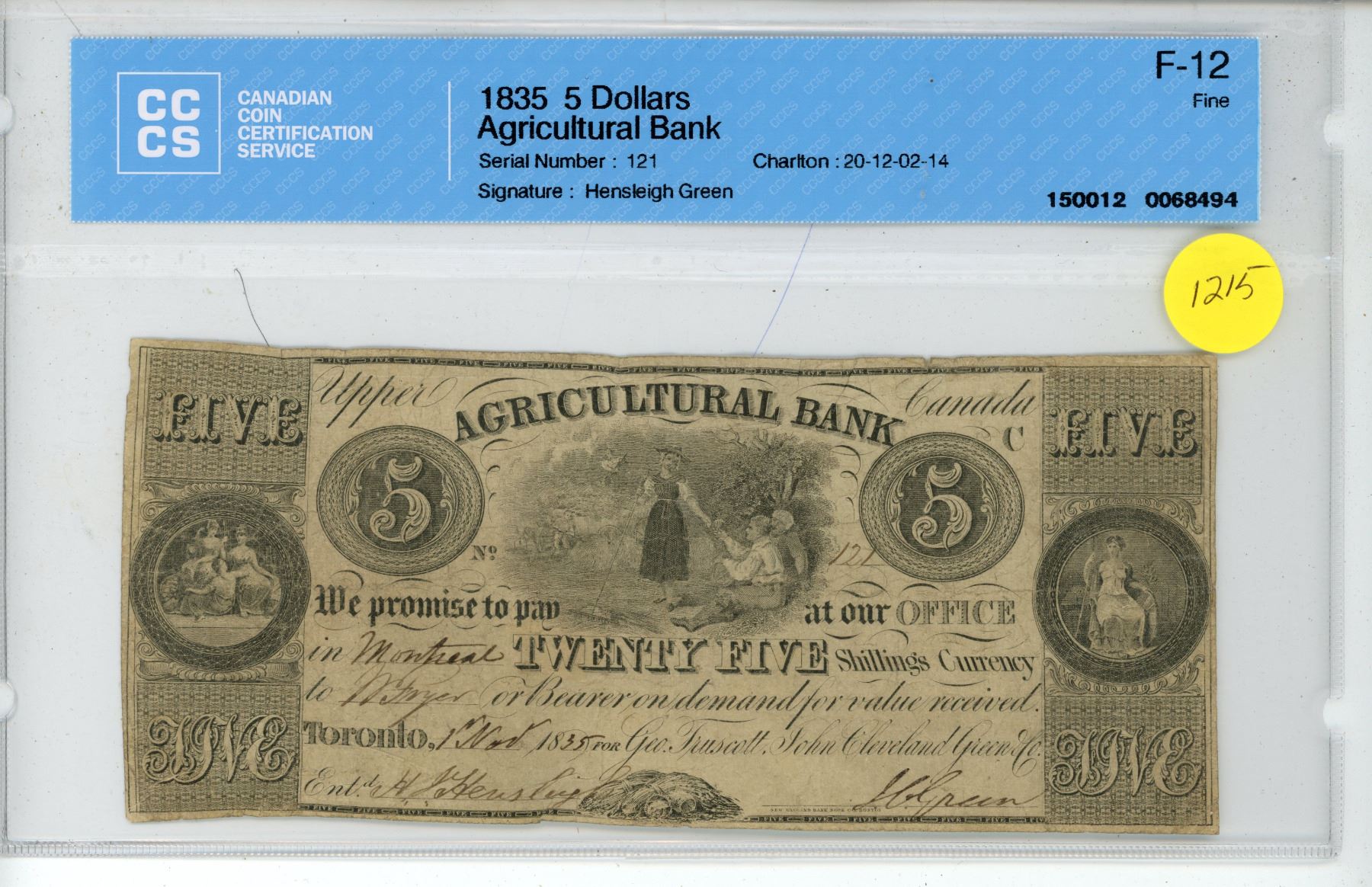 $5 1835 Paper Chartered Note - F-12 - CCCS Graded