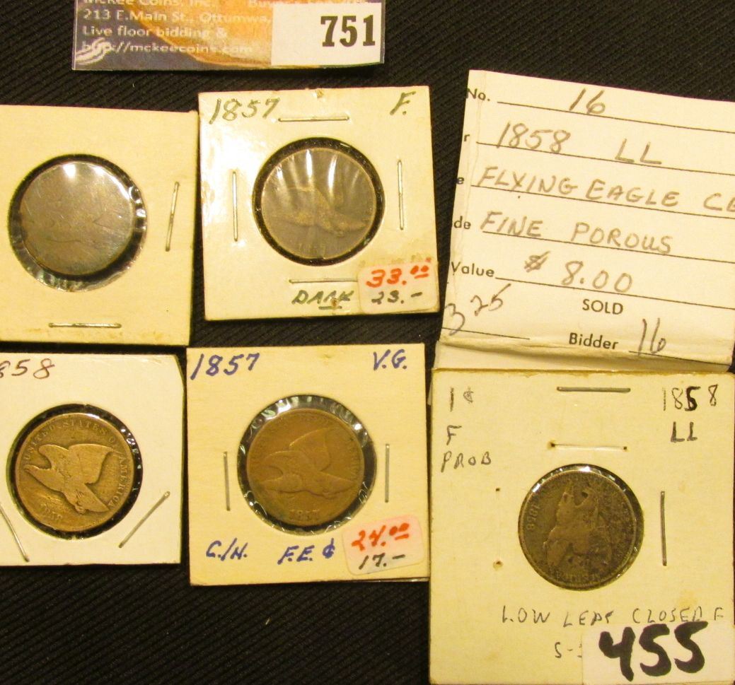(5) 1857-58 U.S. Flying Eagle Cents with grades up to Fine.