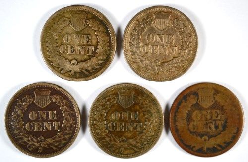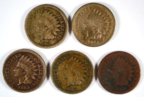 5-1863 INDIAN HEAD CENTS "GRADING SET" ( AG, GOOD,FINE,VF,XF)