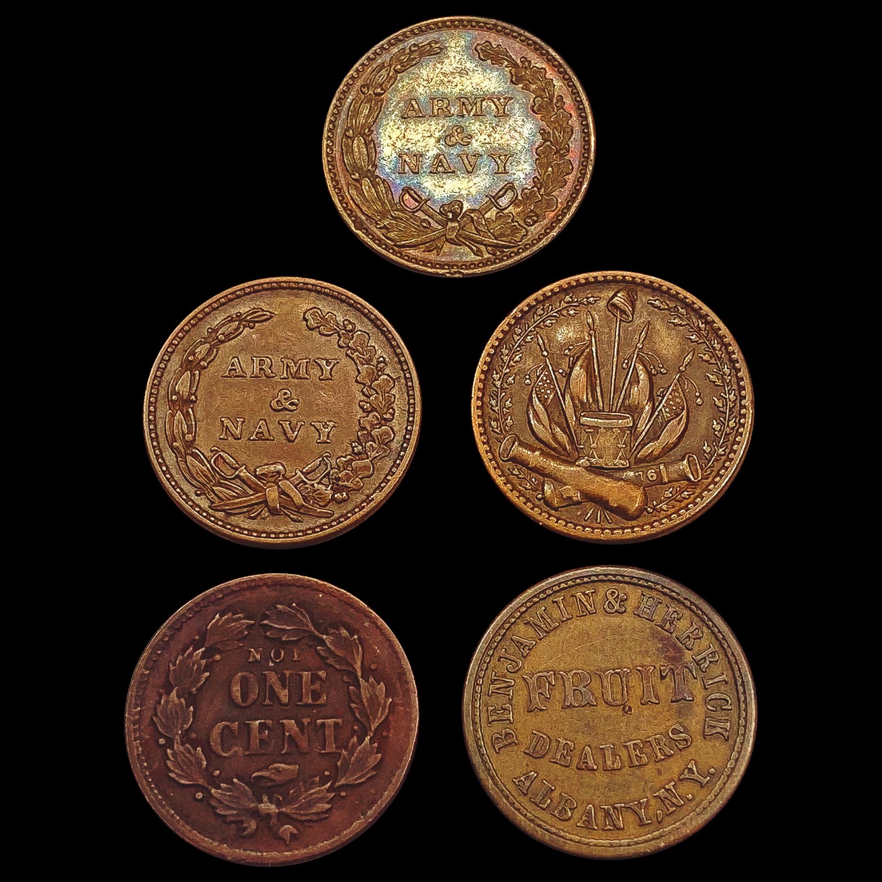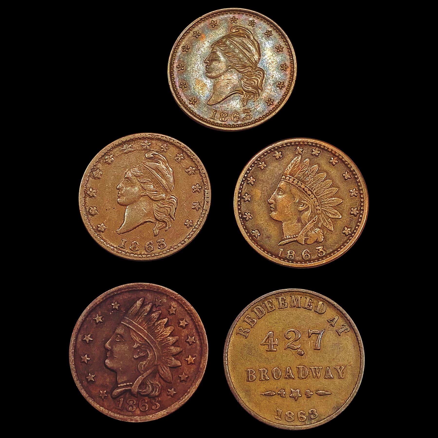 [5] 1863 Varied Civil War Tokens Lot [5 Coins] HIGH GRADE
