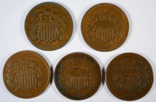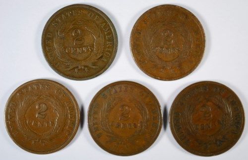 5- 1864 TWO CENT "GRADING SET" (AG,GOOD,VG,FINE,VF)