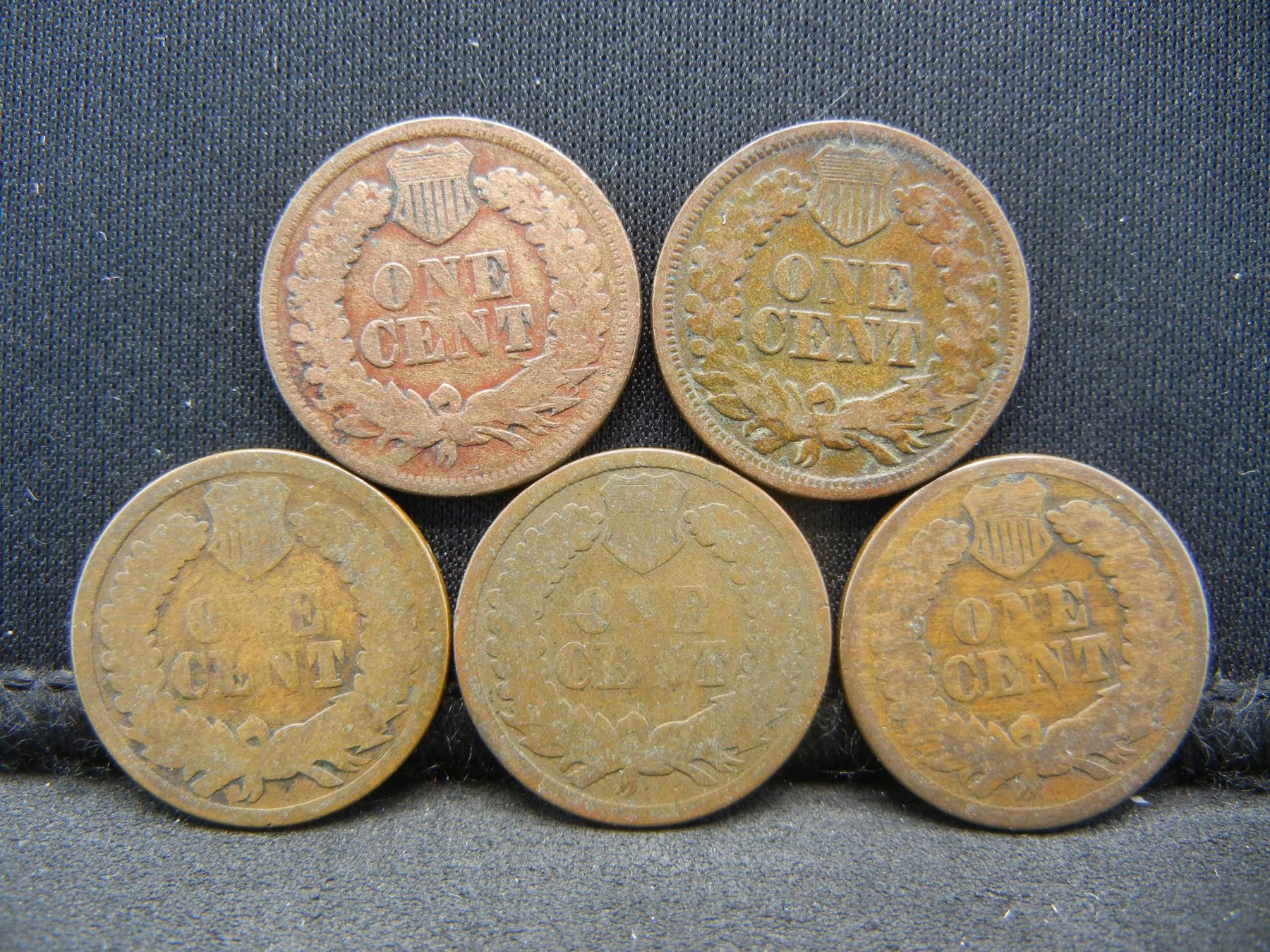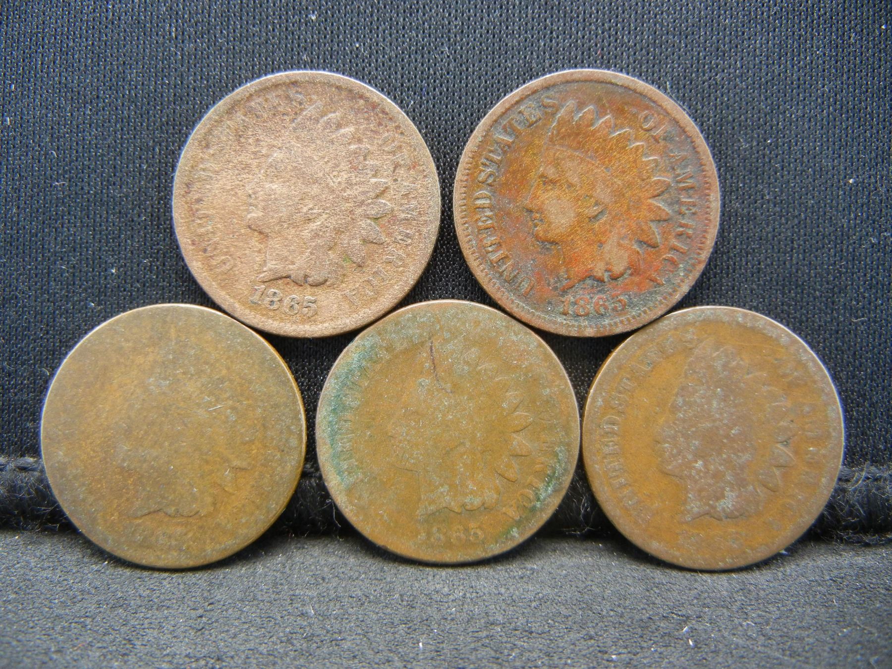 (5) 1865 Indian Cents Better Date