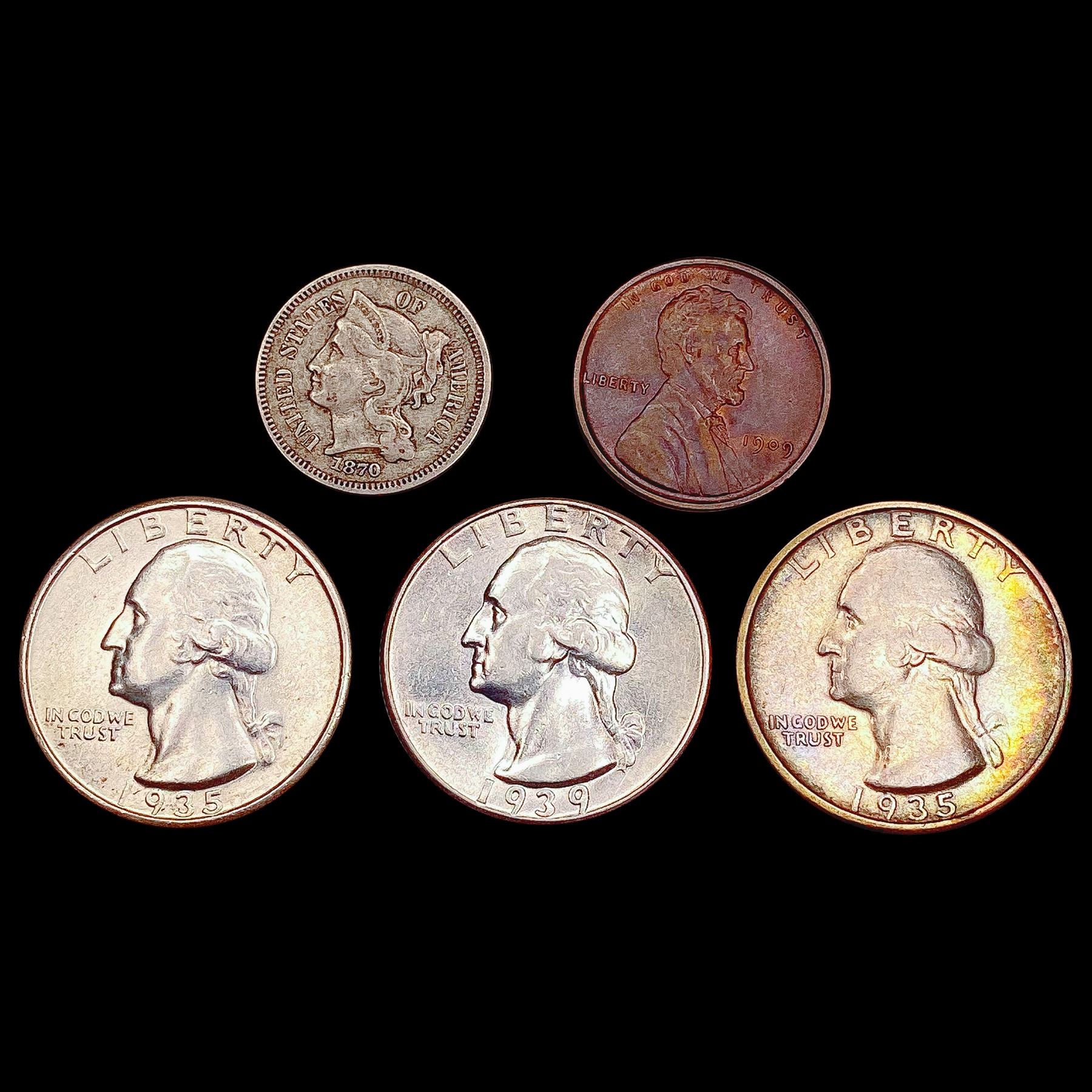 [5]1870-1939 Varied U.S. Coins [1C-25C] HIGH GRADE