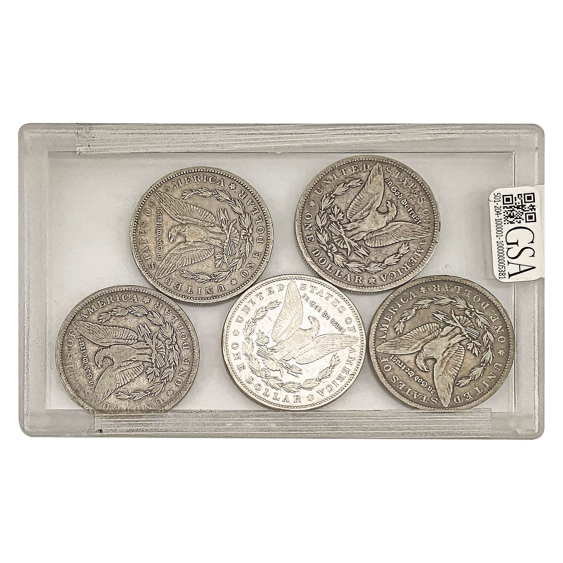 COINS AND CURRENCY LISTED IN GSA’S CATALOG AS GRADED AND ENCAPSULATED BY PCGS, NGC, ANACS, ICG, PCGS CURRENCY, PMG, PCGS BANKNOTE GRADING, CMC OR ANY OTHER THIRD-PARTY GRADING SERVICE ARE LIKEWISE SOLD “AS-IS” EXCEPT AS EXPRESSLY SET FORTH HEREIN. ALL THIRD-PARTY GRADING SERVICE GUARANTEES, INCLUDING AUTHENTICITY, ARE THE SOLE RESPONSIBILITY OF THE THIRD-PARTY GRADING SERVICE AND NOT WARRANTIES OR GUARANTEES OF GSA. BIDDERS SHOULD CONTACT THESE THIRD-PARTY GRADING SERVICES DIRECTLY WITH RESPECT TO ANY CLAIMS OR QUESTIONS THEY MAY HAVE CONCERNING THEIR GUARANTEES AND WARRANTIES. BIDDERS ACKNOWLEDGE AND AGREE THAT AUCTIONEER IS NOT BOUND BY OR LIABLE FOR ANY OPINION OR CERTIFICATION BY ANY THIRD-PARTY GRADING SERVICE. REMOVAL OF A PRODUCT FROM ITS PROTECTIVE CASING OR HOLDER OR ALTERATION OF ANY COIN HOLDER WAIVES ALL RIGHTS CONCERNING THE PRODUCT CONTAINED THEREIN.