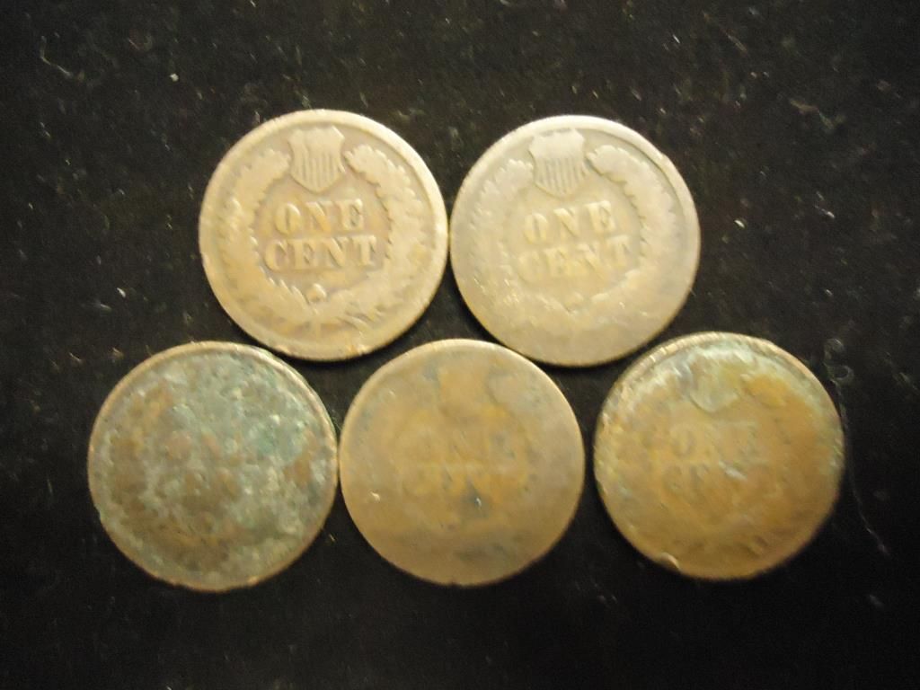 5-1880'S INDIAN HEAD CENTS COUPLE BENT & CORRODED