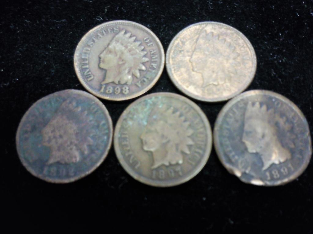 5-1890-S INDIAN HEAD CENTS (SCRUFFY & 1 BENT)