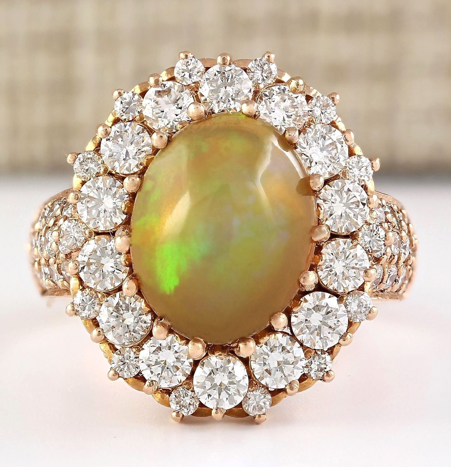 5.19 CTW Natural Opal And Diamond Ring In14k Rose Gold