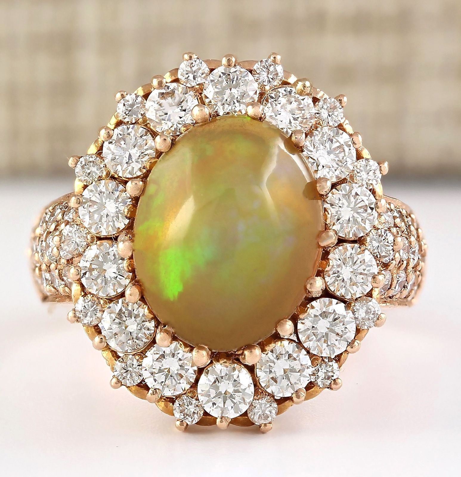 5.19 CTW Natural Opal And Diamond Ring In18K Rose Gold