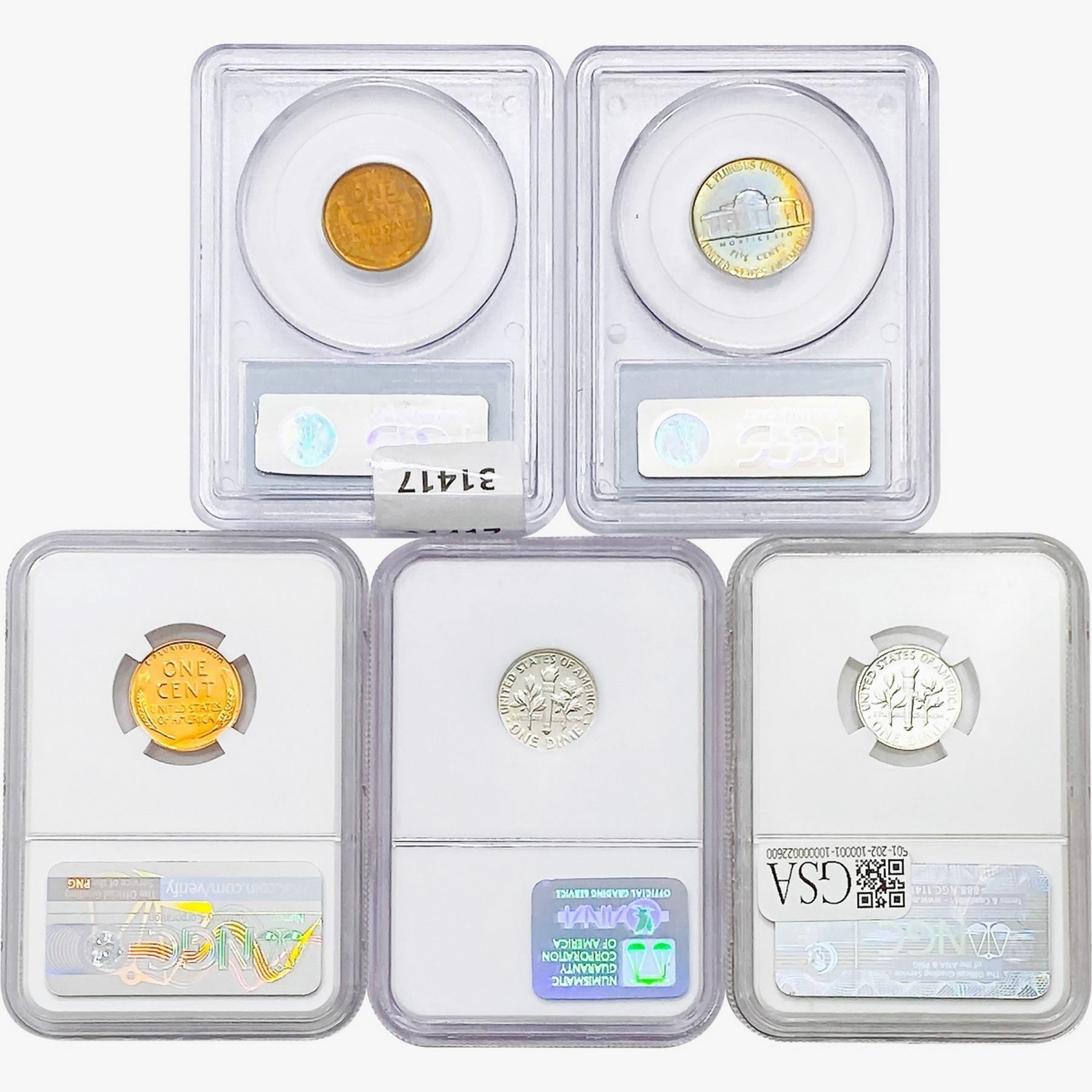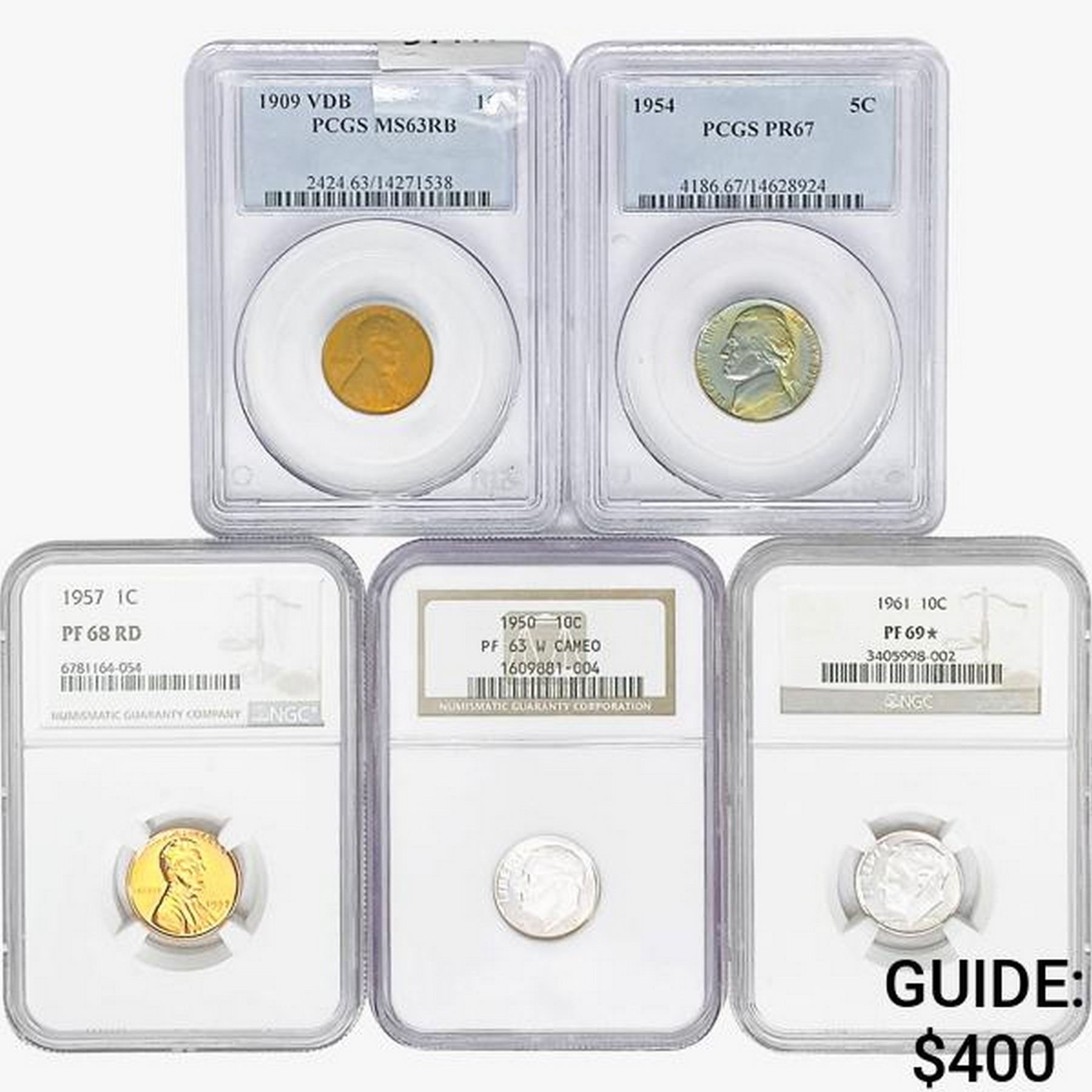 [5] 1909-1961 2 1C, 1 5C, 2 10C NGC/PCGS PF/MS