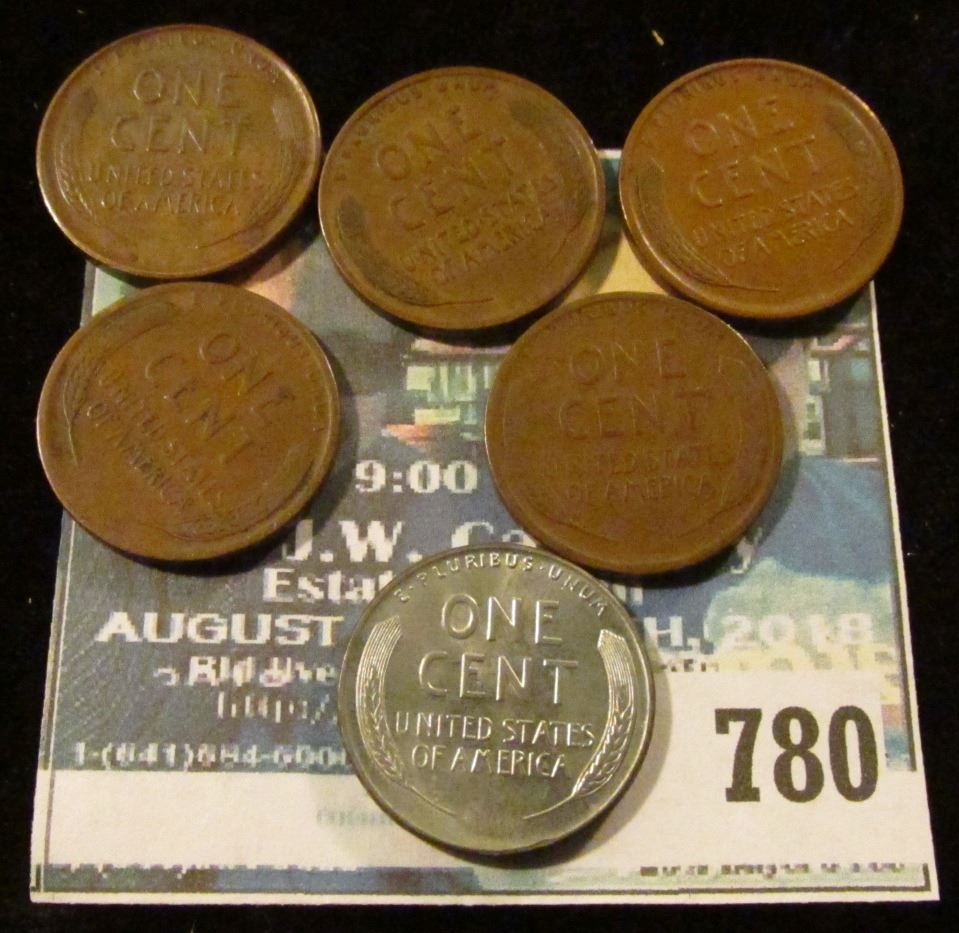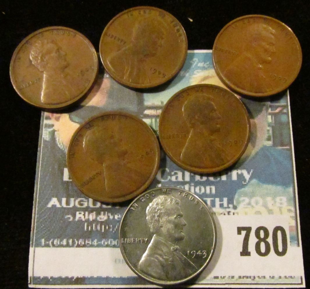 5 1909-VDB WHEAT CENTS AND 1943 WORLD WAR 2 STEEL CENT