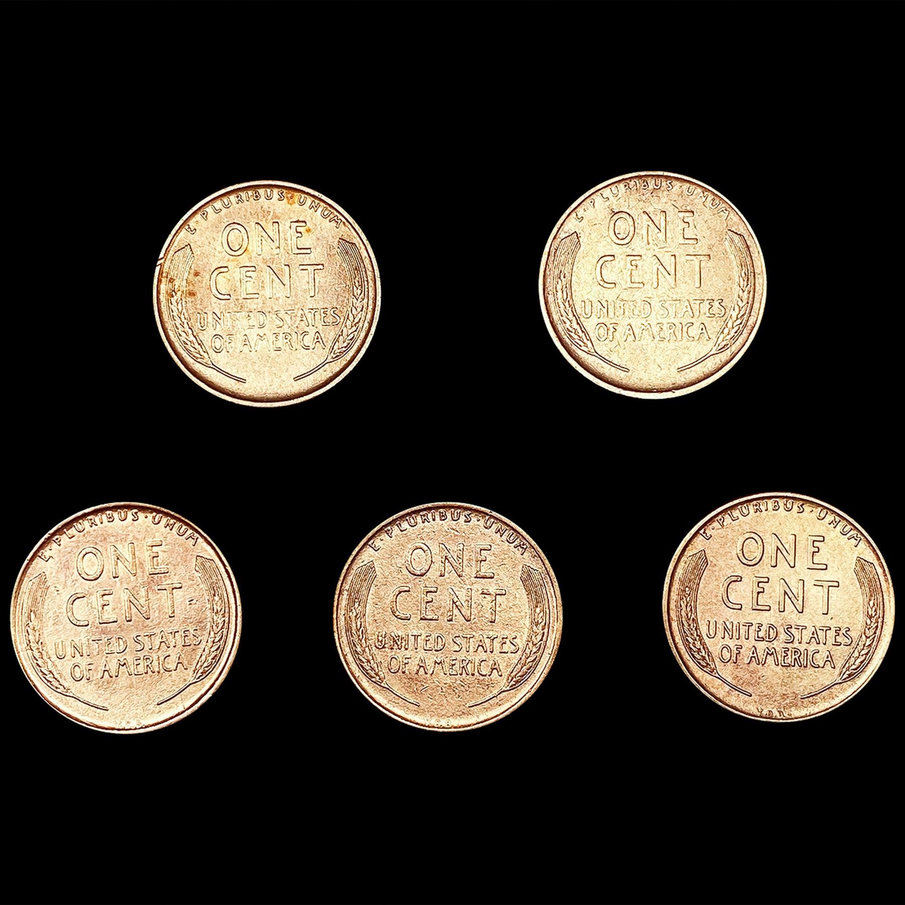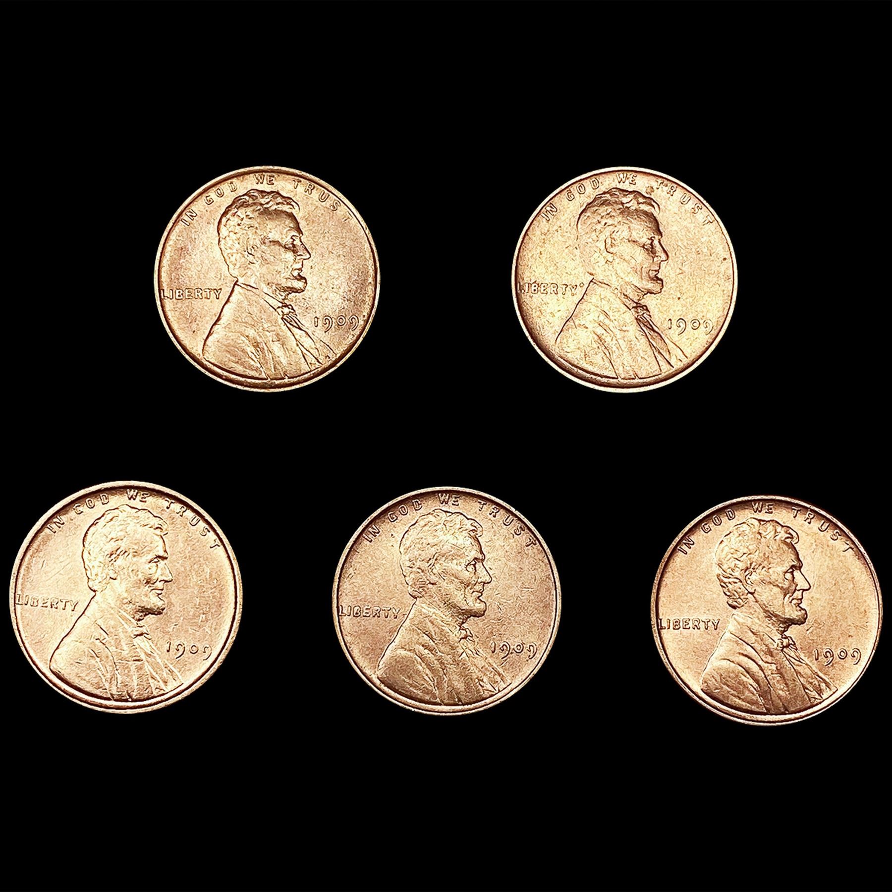 (5) 1909 Wheat Cents CLOSELY UNCIRCULATED
