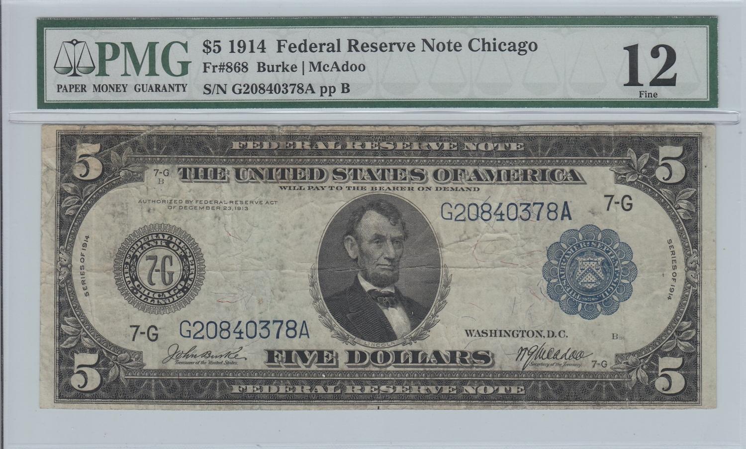 $5 1914 FEDERAL RESERVE FR 868 PMG GRADED