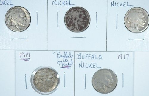 5-1917 BUFFALO NICKELS "GRADING SET" (AG,GOOD,VG,FINE,VF)