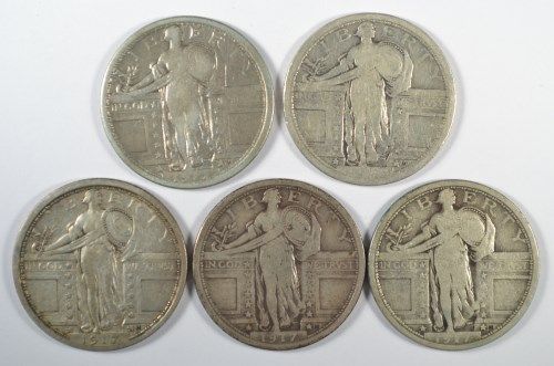 5-1917 TYPE 1 STANDING LIBERTY QUARTERS "GRADING SET" (AG,GOOD,VG,FINE, VF)