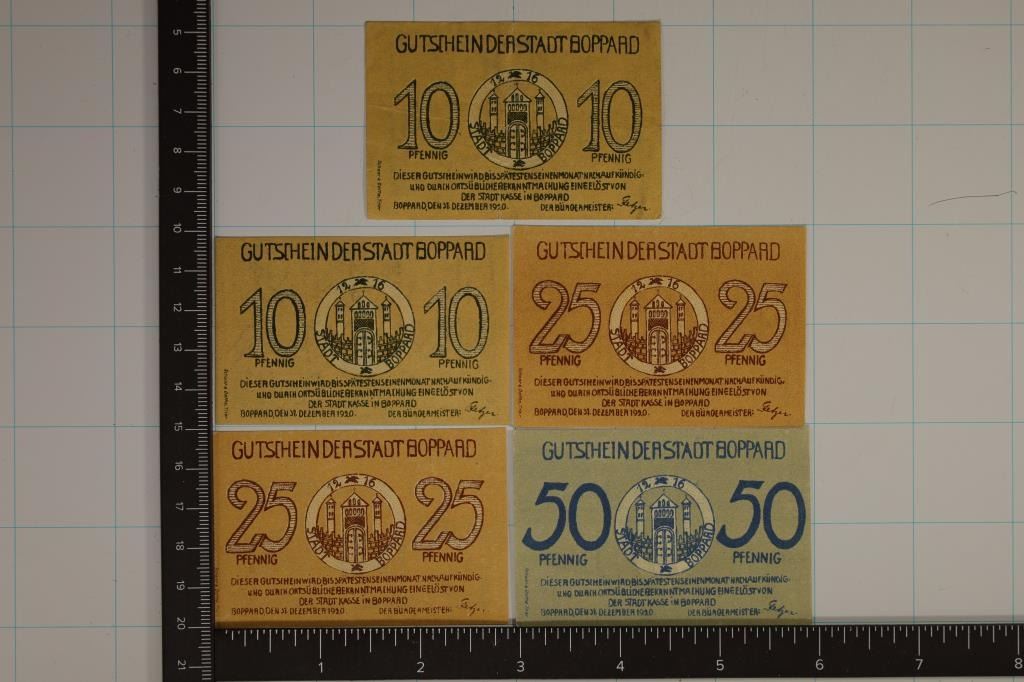 2-25 PFENNIG AND 1-50 PFENNIG. ALL CRISP UNC EXCEPT ONE OF THE 10'S HAS FOLD DOWN CENTER