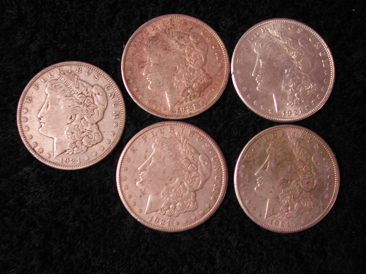 5- 1921 MORGAN DOLLARS (ONE MONEY)