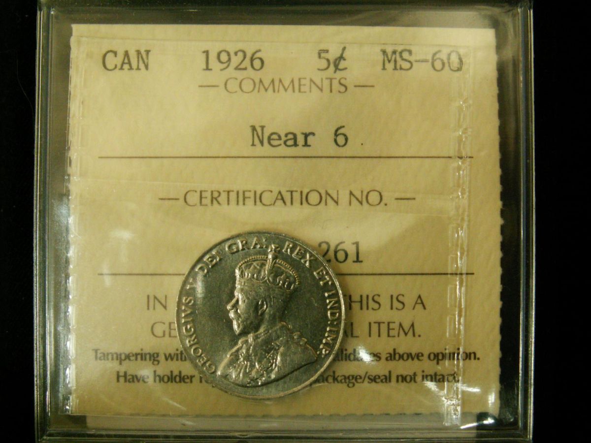 5¢ 1926 Nr ICCS MS60. Appealing example with lots of lustre.