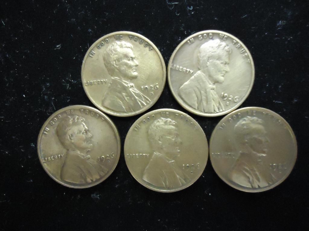 5-1926-S LINCOLN CENTS VG-EF CLEANED